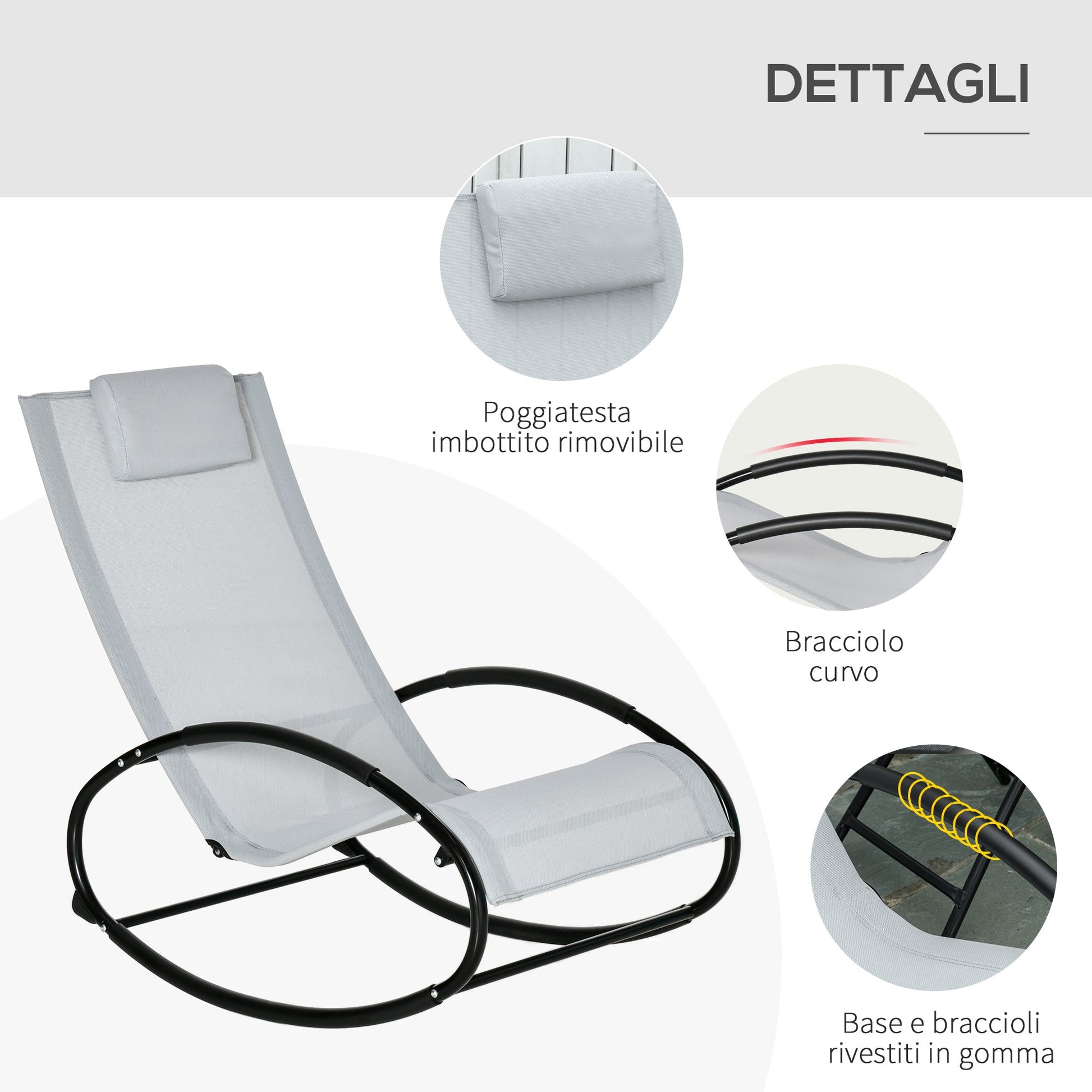 Zero Gravity Garden Rocking Chair, Ergonomic Garden Lounger with Cushion and Breathable Fabric for Indoor and Outdoor Use, 105x62x88 cm, Grey