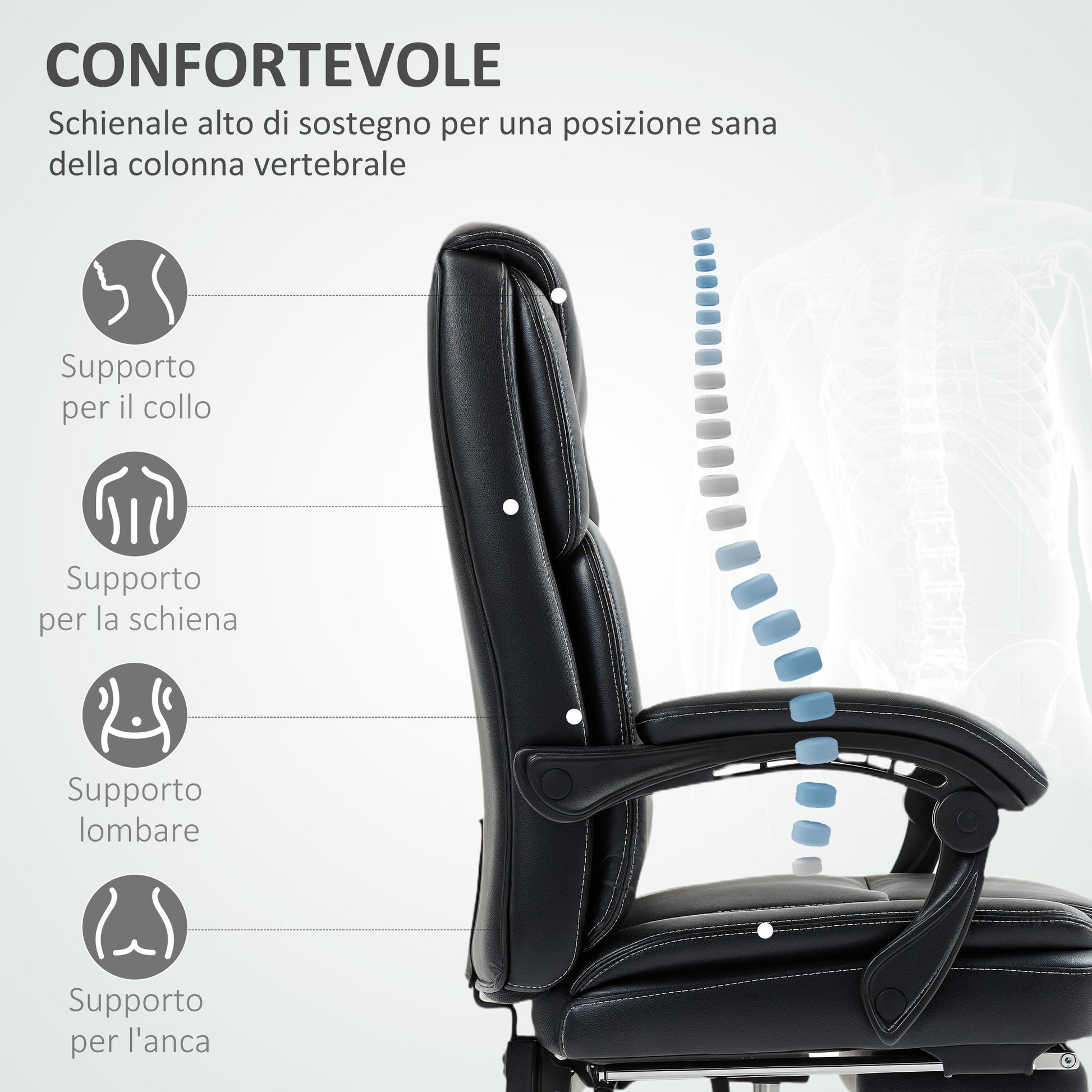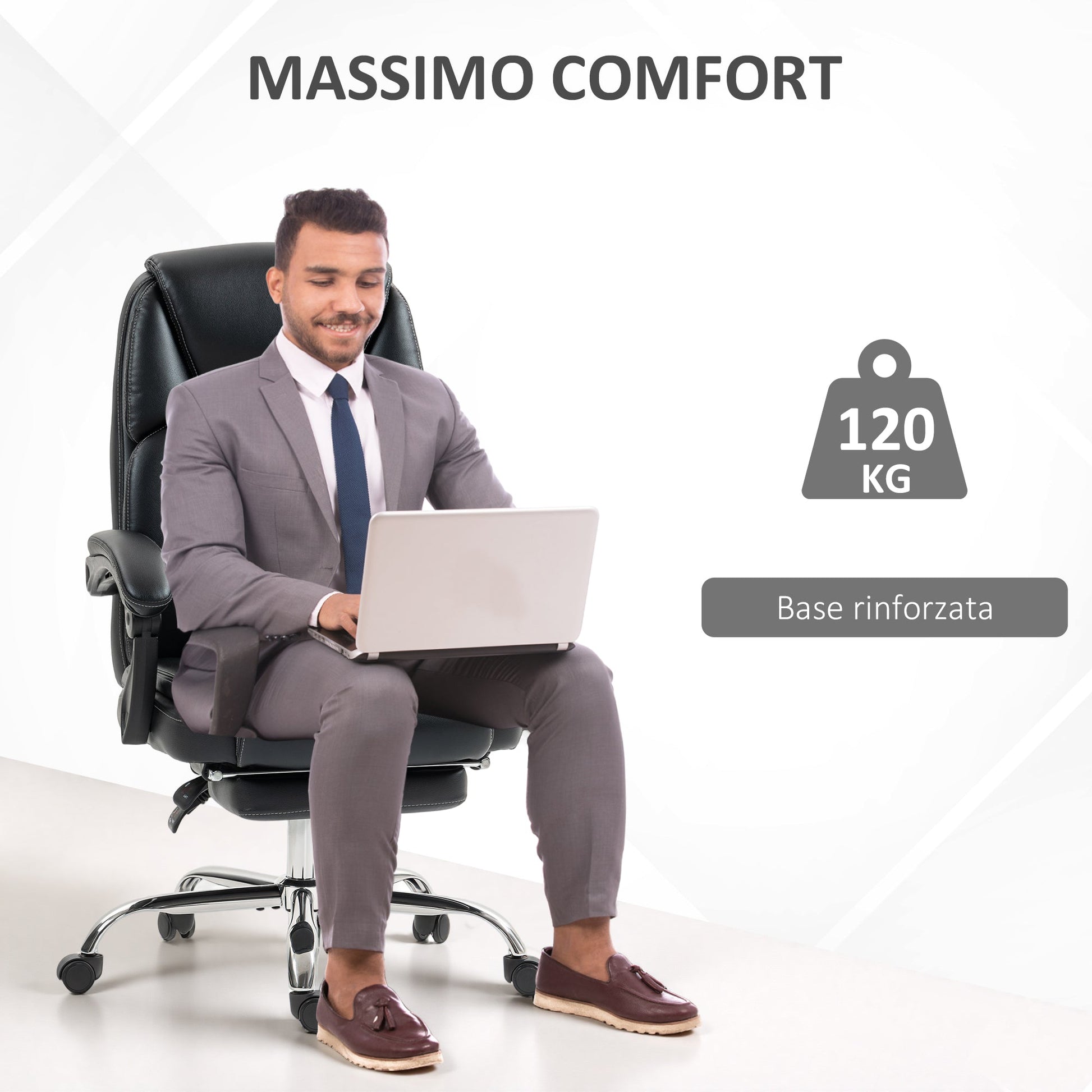 Reclining Office Chair with Pull-Out Footrest, PU Leather, 120 kg Capacity, Black