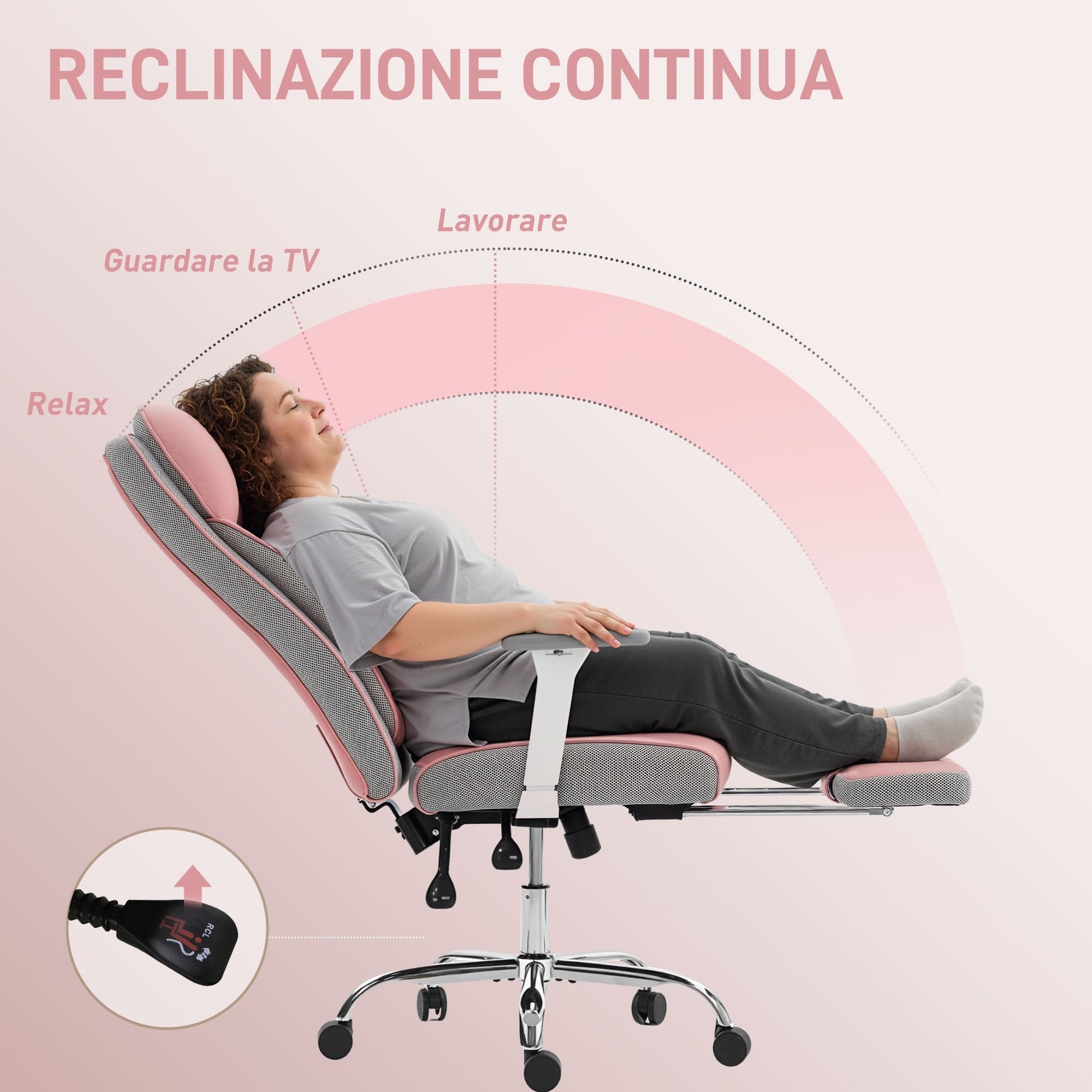 Ergonomic Office Chair with Adjustable Armrests, Footrest and Headrest, Pink