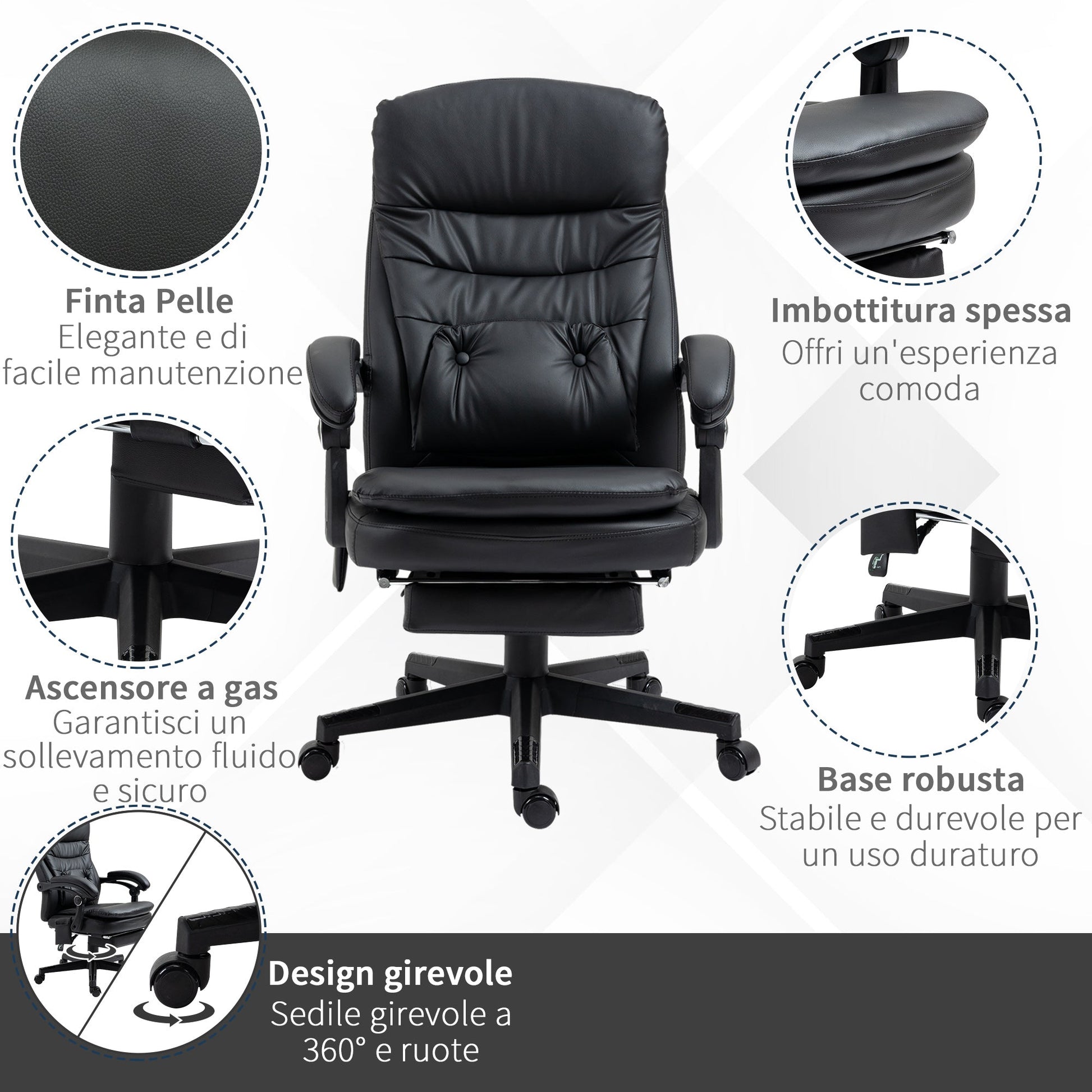 Faux Leather Massage Office Chair with USB Port, 64x69x107-115cm, Black