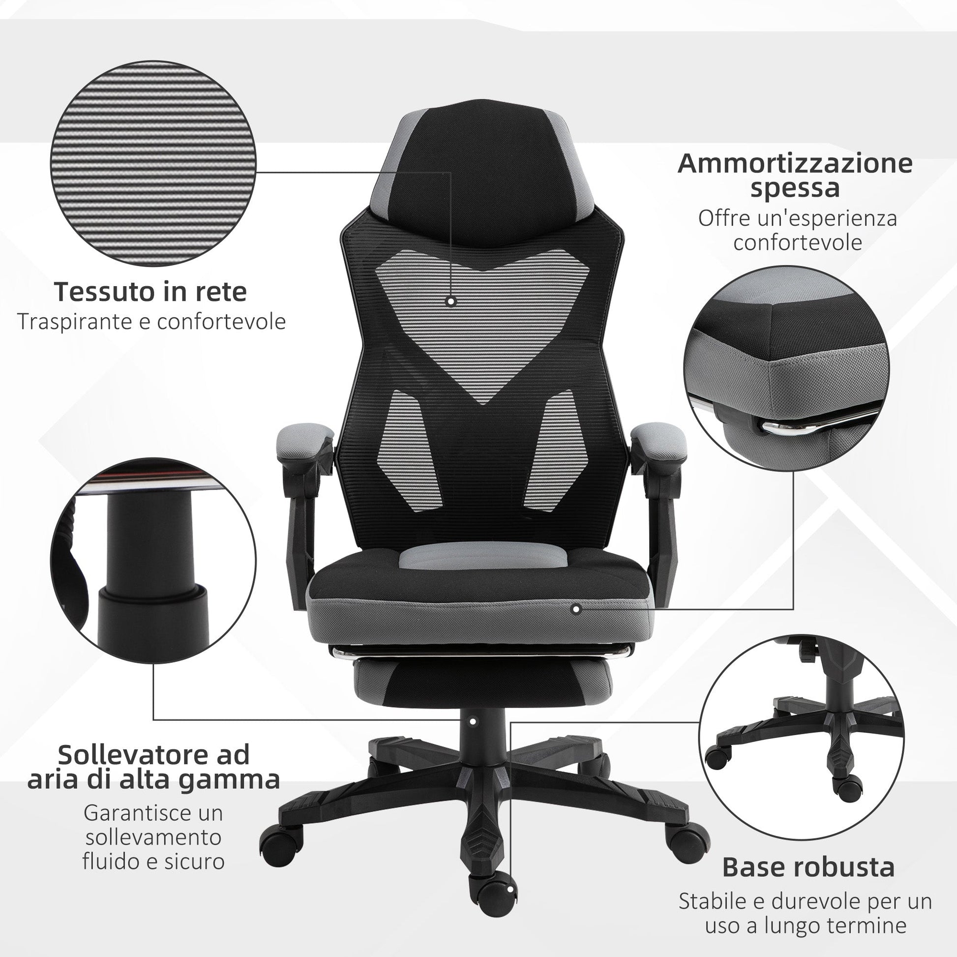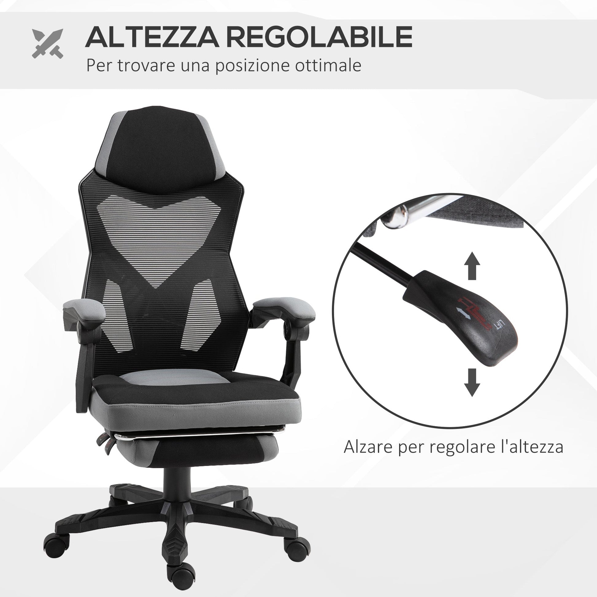 Ergonomic Office Chair with Reclining Backrest, Retractable Footrest, Adjustable Height, Grey