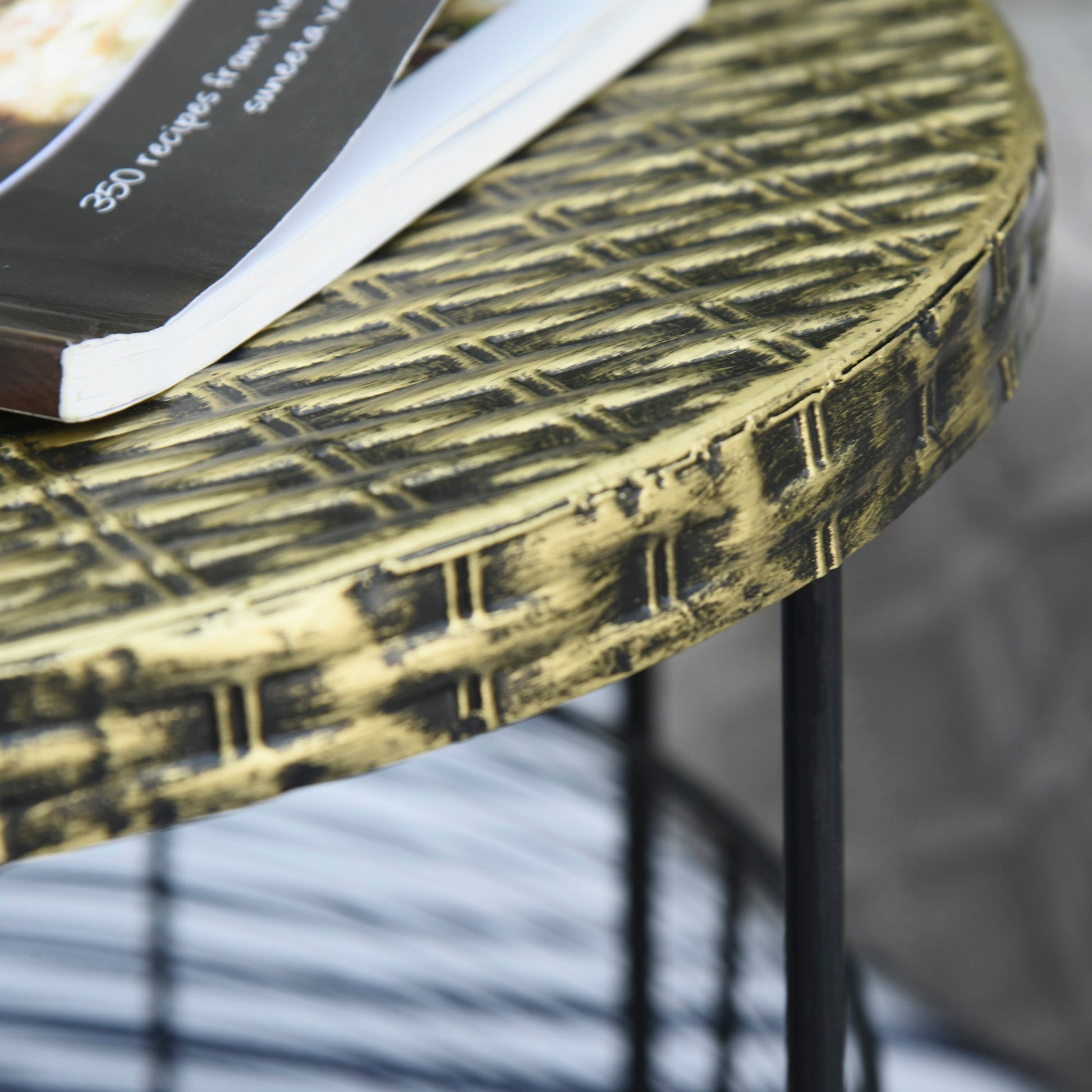 - GARDEN FURNITURE SET: This set of 2 garden tables stands out for its elegant industrial style. Each table is composed of a metal frame and a rattan-effect tabletop.