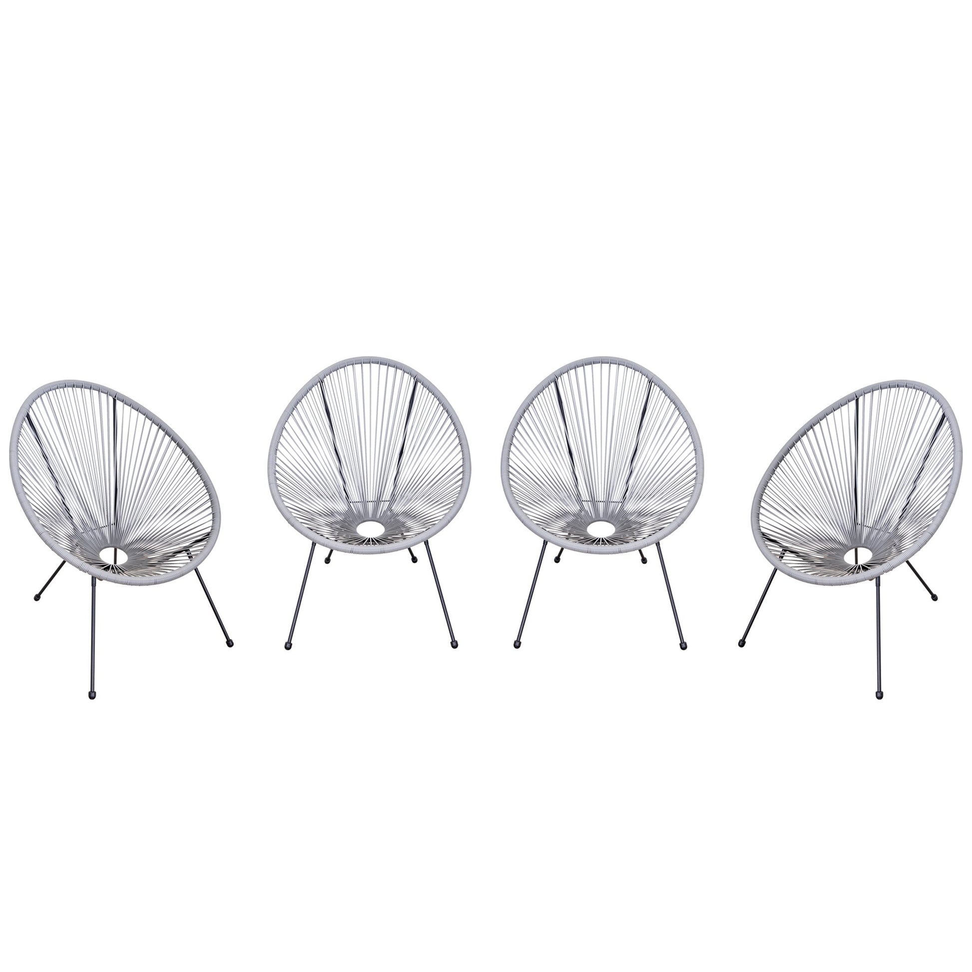 Set of 4 Oval Garden Chairs in PE Rattan and Metal in Boho Chic Style, Light Grey