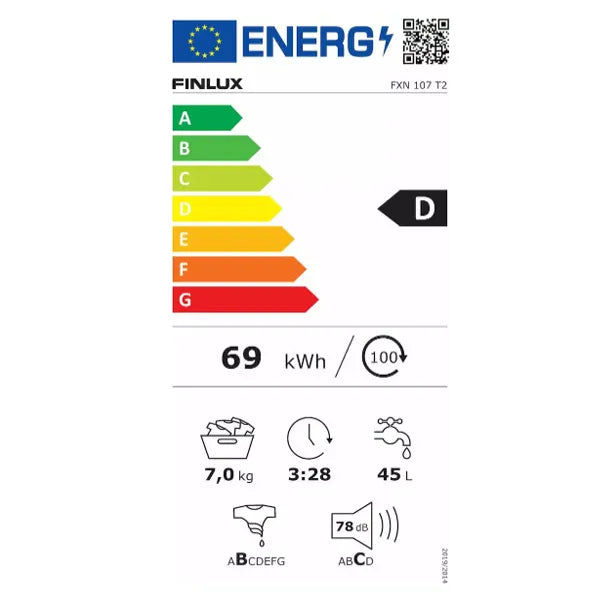 Clean efficiently with the Finlux FXN-107T2 7 kg 1200RPM Washing Machine. Built for homes in Malta, offering great care for clothes, lots of settings, and modern conveniences.