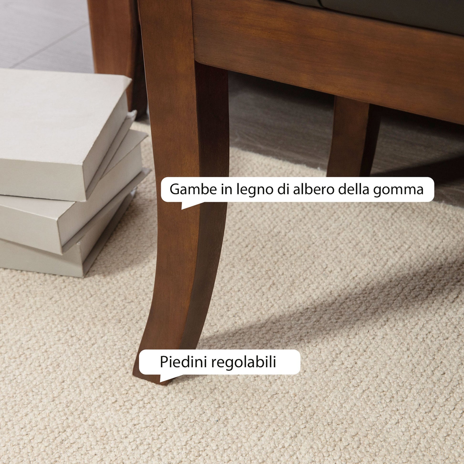 - • Entrance bench with wooden legs for high stability