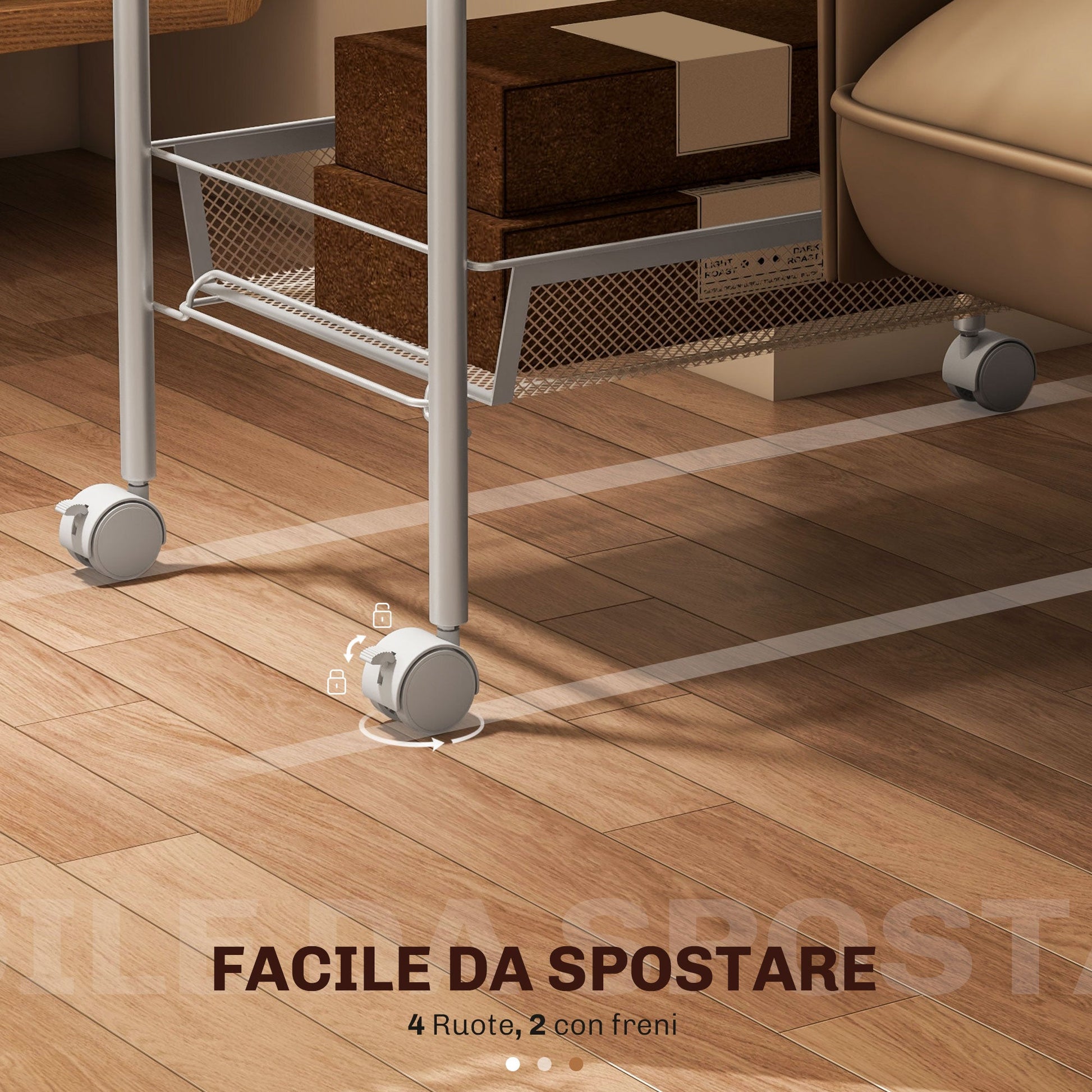 This HOMCOM storage trolley, compact in its shape, is ideal for small, limited spaces. The 5-tier shelf provides ample space for all the accessories you want to store. The kitchen trolley is also equipped with 2 handles for easy movement, while the swivel wheels allow you to move it wherever you need. The space-saving trolley works well as a kitchen trolley, food trolley, cleaning trolley etc. Features: • 5 removable wire baskets • Multi-purpose trolley for any room in the house • 4 removable hooks included for hanging small accessories • Kitchen trolley with 4 smooth-running wheels, 2 of which are lockable • Structure in steel and plastic • 2 handles for easy control of the trolley • Assembly required Technical data: • Colour: White • Material: Steel, PP plastic • Overall dimensions: 45W x 26.5D x 106H cm • Inside of the basket: Basket: 41.5W x 26.5D x 6H cm • Weight capacity: 15 kg (total), 3 kg (basket) Package contents: • 1 x Kitchen trolley • 1 x Instruction manual