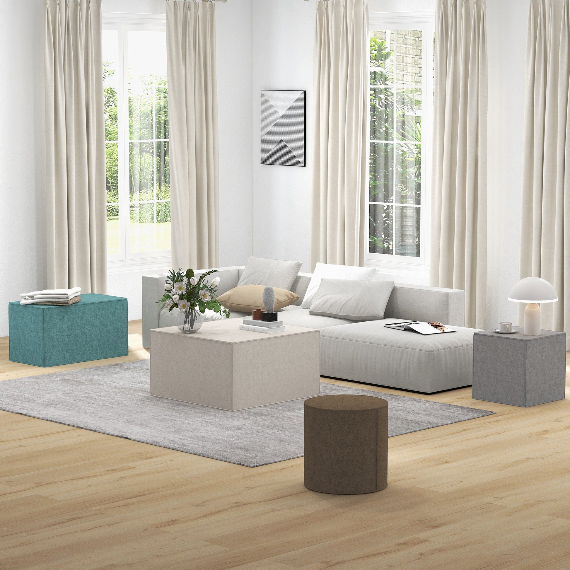 Square Footstool 2 in 1 with Removable Linen Effect Fabric Cover, 41x41x41 cm, Light Grey