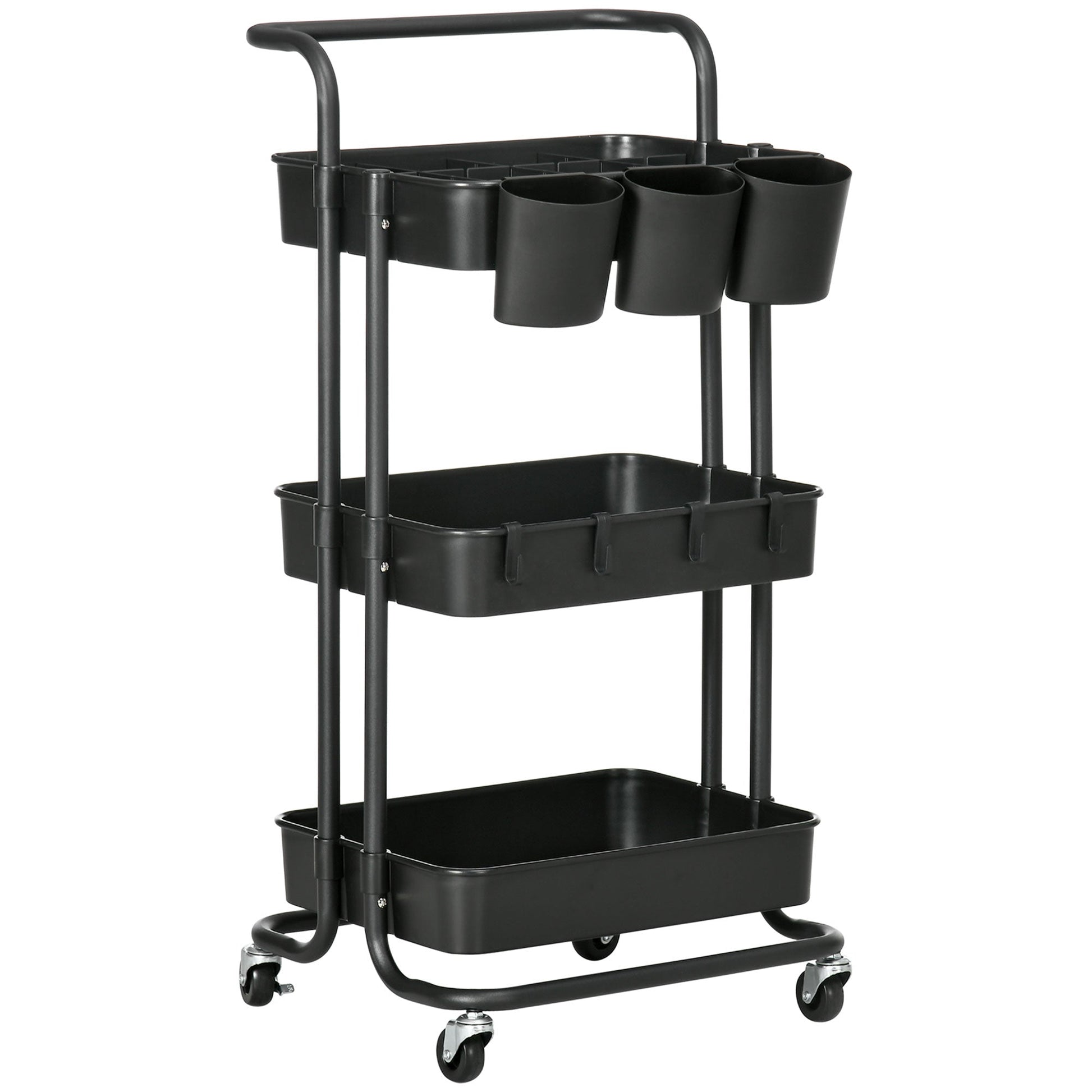 - • Includes 3 boxes and 4 removable hooks to customize the kitchen trolley