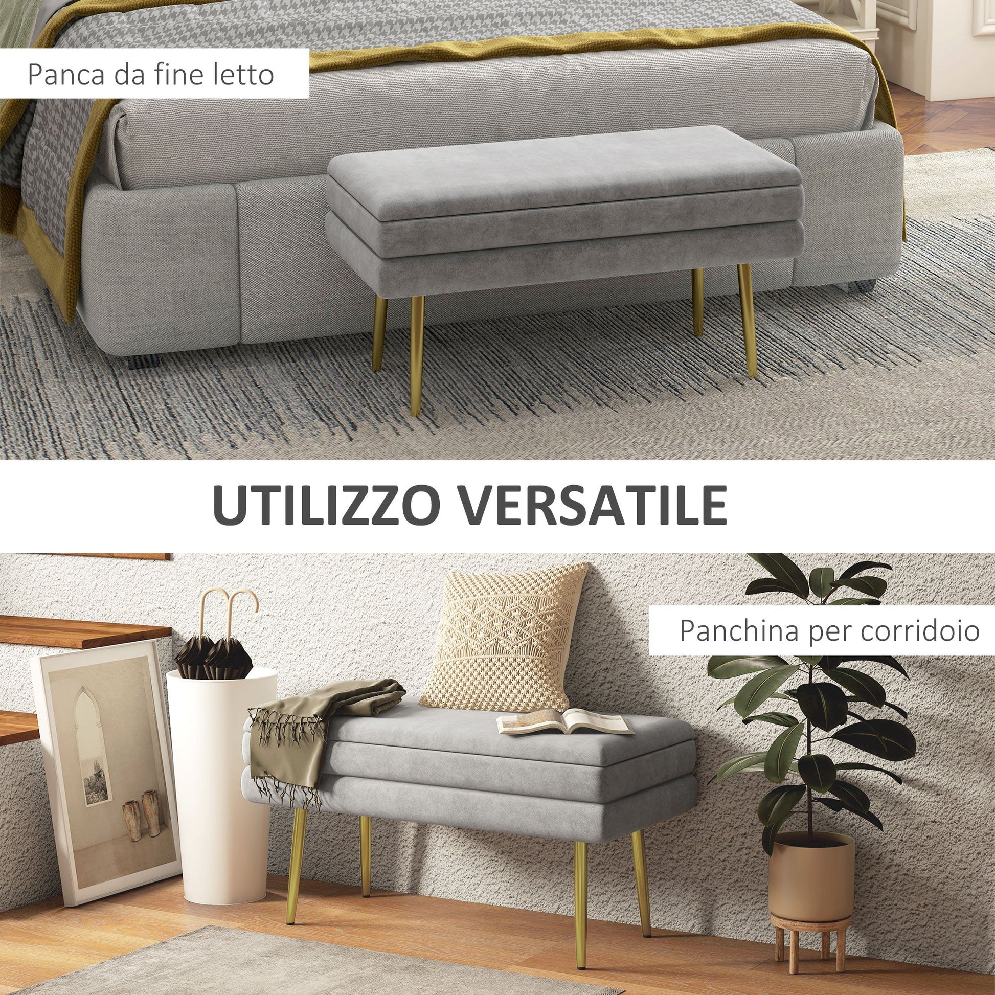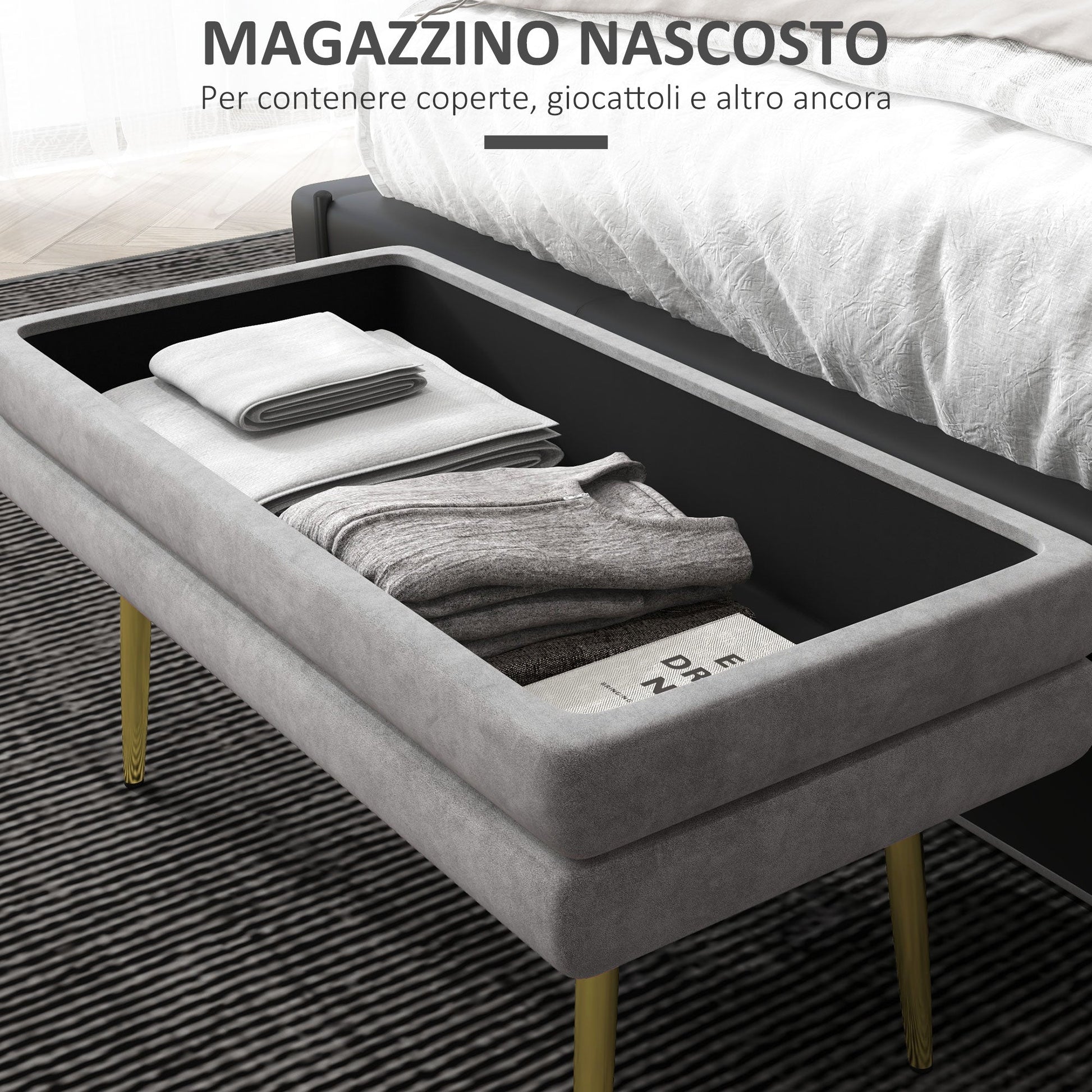 Bed Bottom Bench with Storage Space, in Steel and Polyester, 79.5x37.5x43 cm, Gray