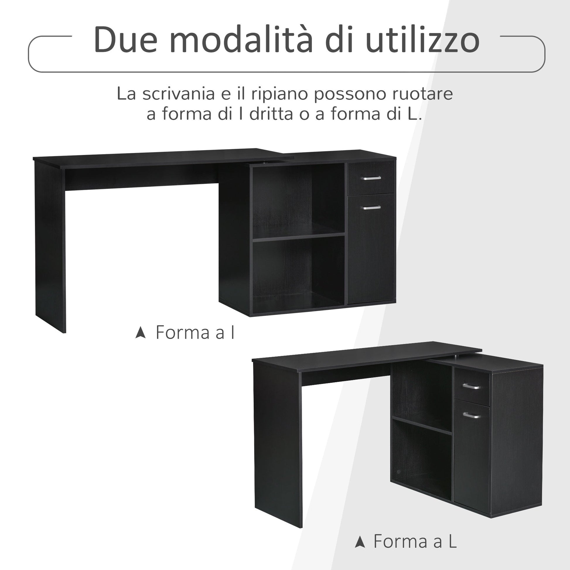 Corner Desk for Study and Office with 2 Drawers and 2 Shelves, Wooden, 117x82x74 cm, Black