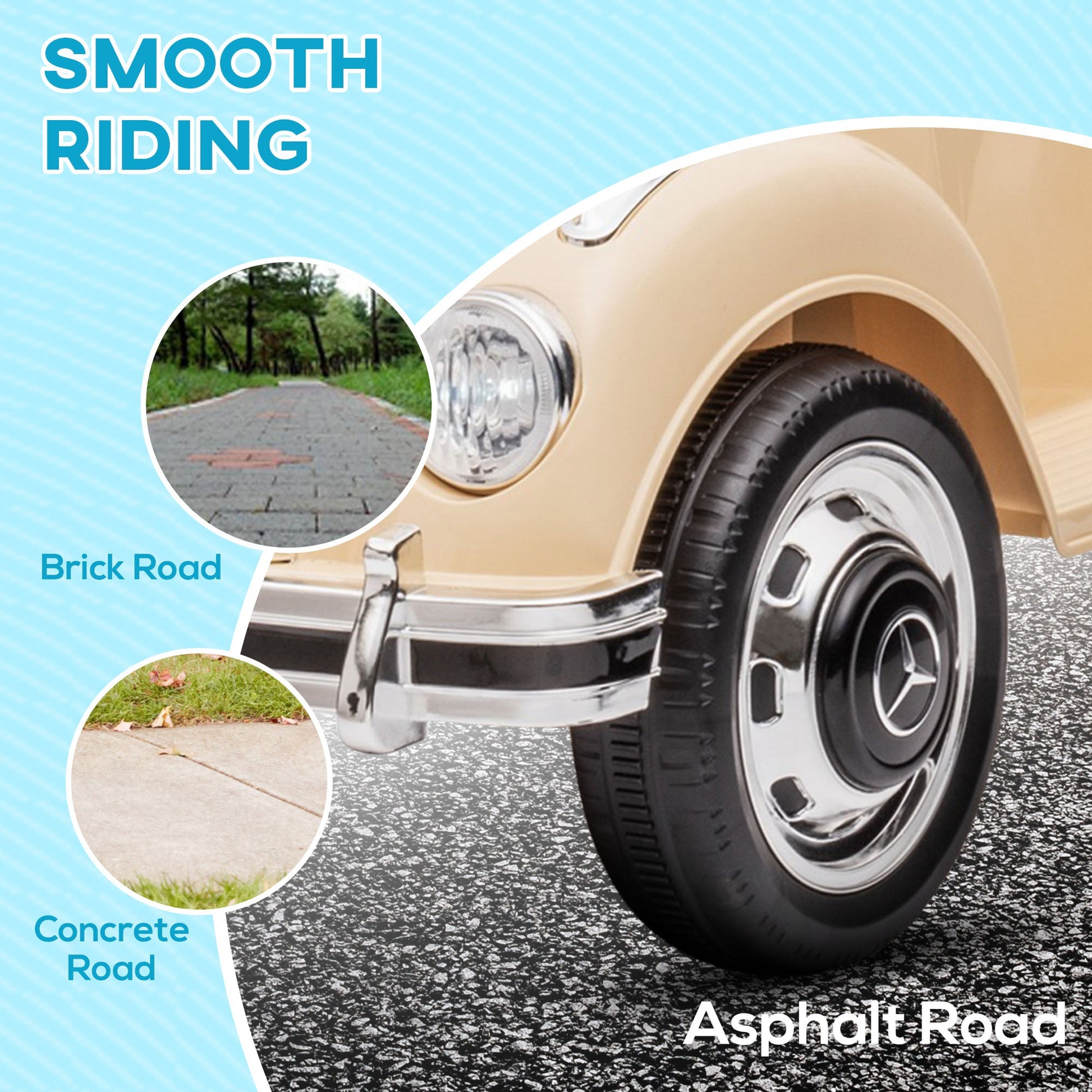 - COMFORTABLE RIDE: The ride-on car is equipped with wear-resistant wheels and is suitable for different types of floors, such as concrete, bricks and asphalt.