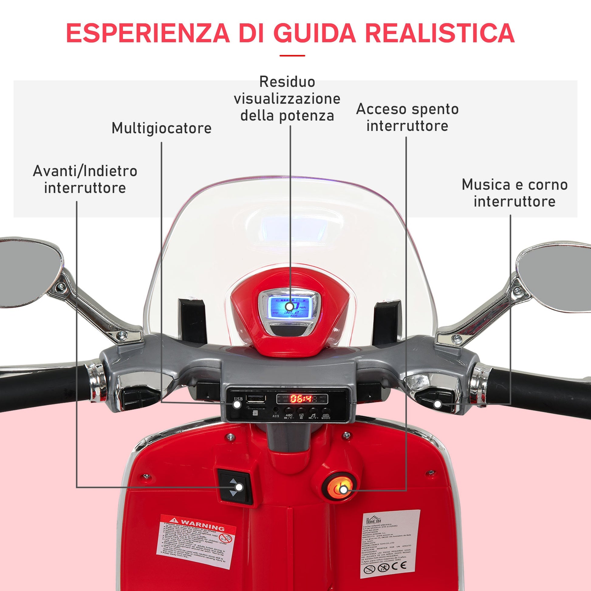 - • The presence of pedals and comfortable handlebars on the electric toy Vespa helps children aged 3 to 6 years to drive