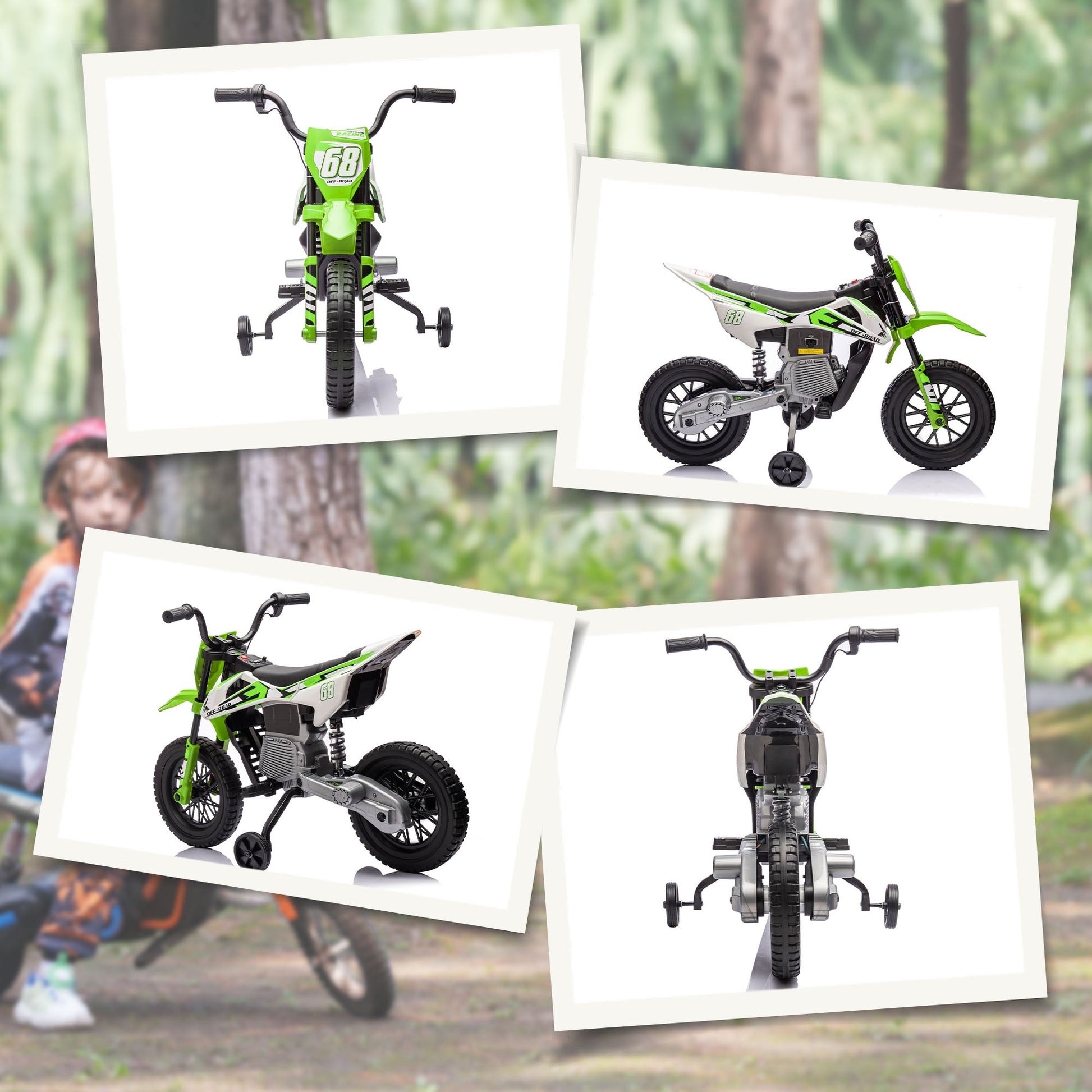 Children's Electric Motorcycle with Wheels and Charge Indicator, in PP and Metal, 107x56x70 cm, Green
