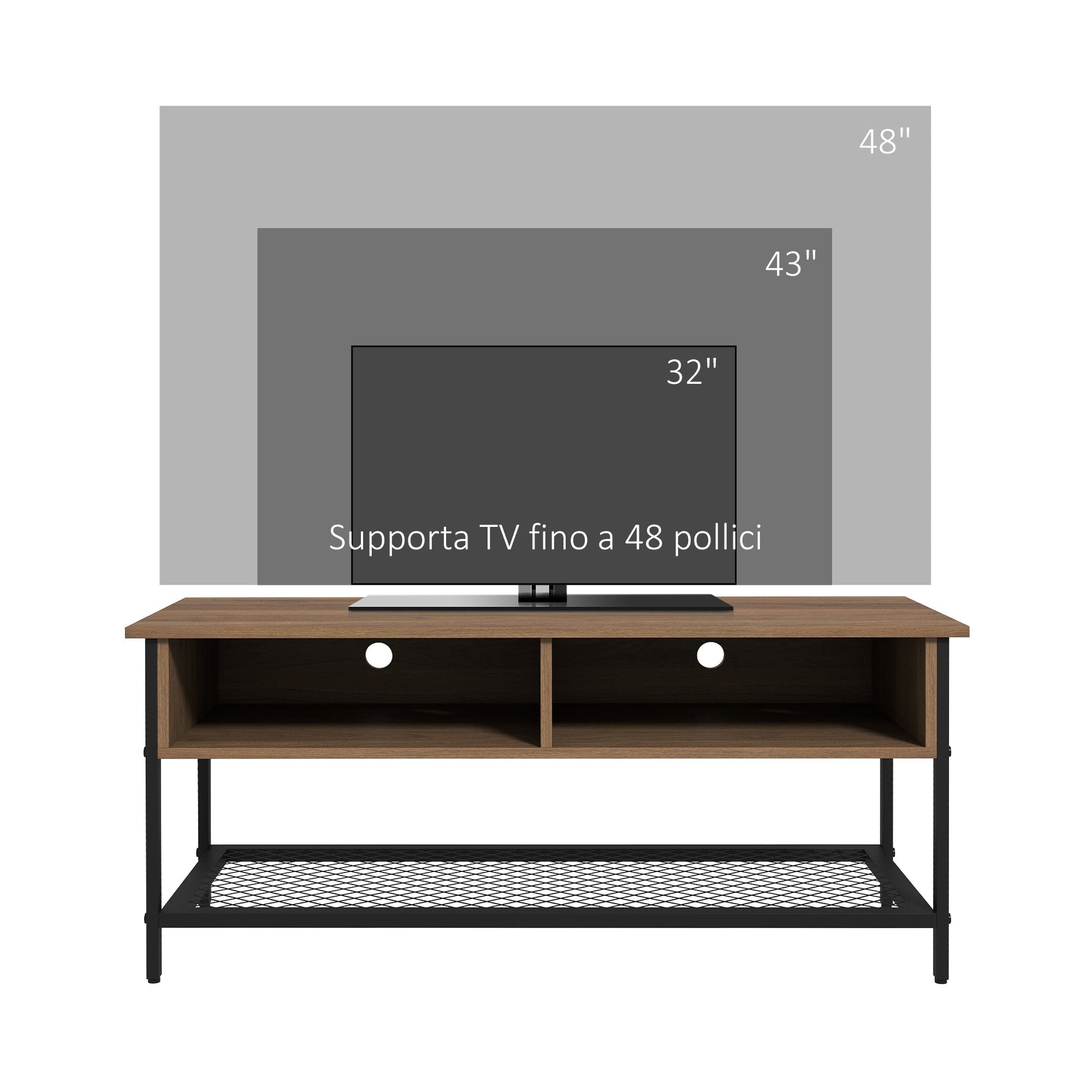 Industrial Style TV Stand Up to 48" in Wood and Steel, 110x40x48cm, Brown and Black
