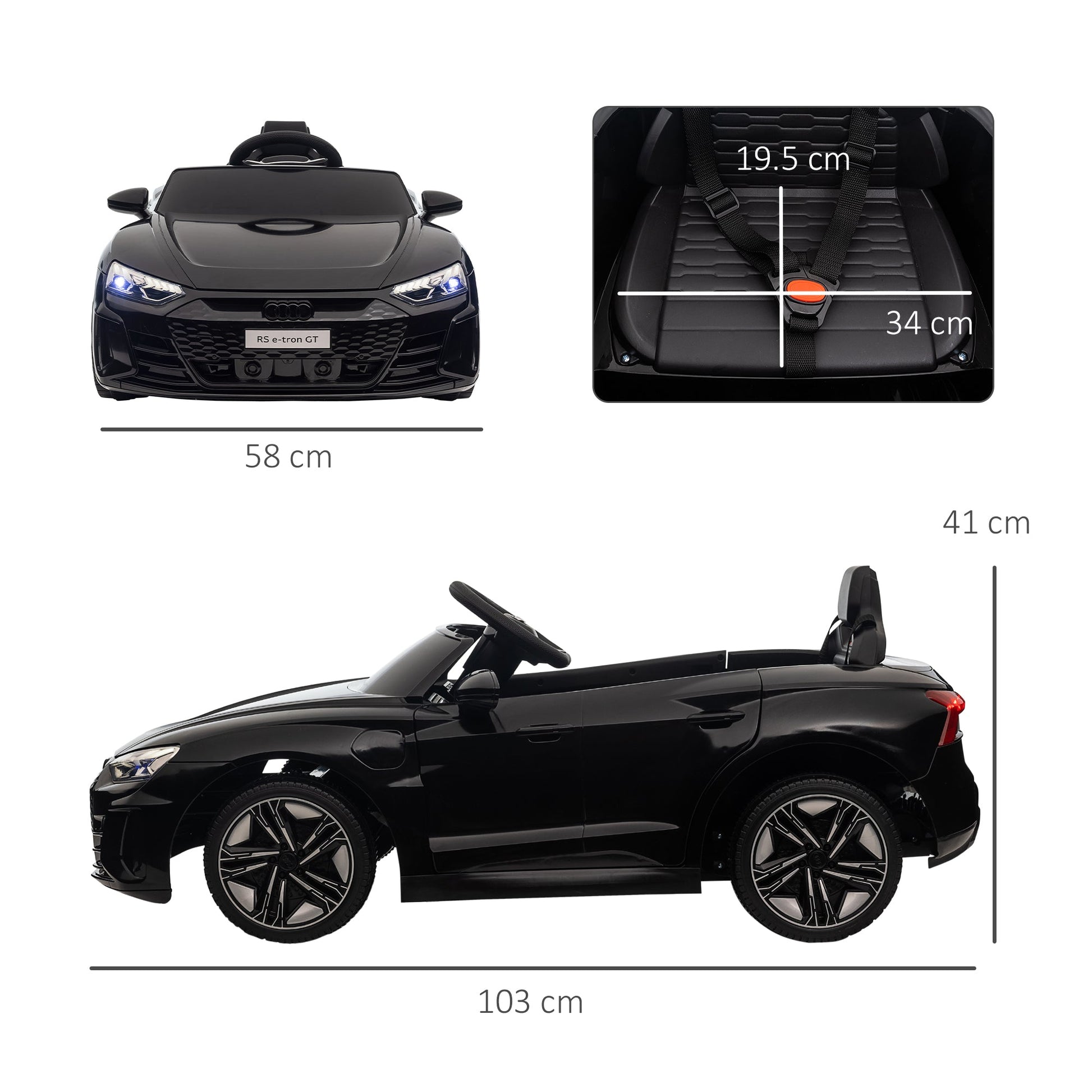 - AUDI RS LICENSED: This electric vehicle for kids is officially licensed by Audi, specifically for the RS E-tron GT model. The car features realistic details, such as LED headlights, a horn, built-in music and wheels with very real tires to give your young drivers authentic fun