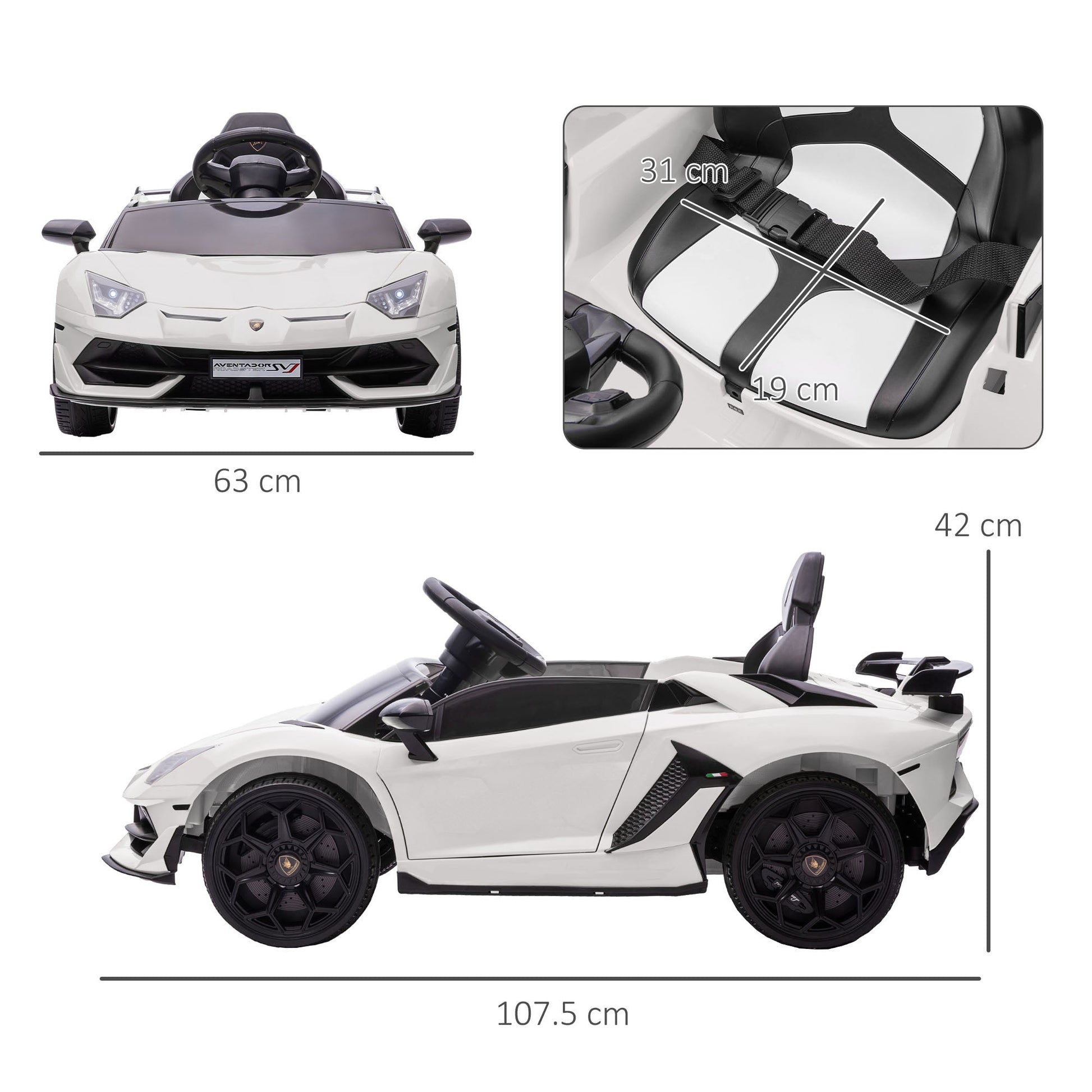 12V Electric Ride-On Toy Car for Kids with Lamborghini License, Horn and Remote Control, 107.5x63x42 cm, White