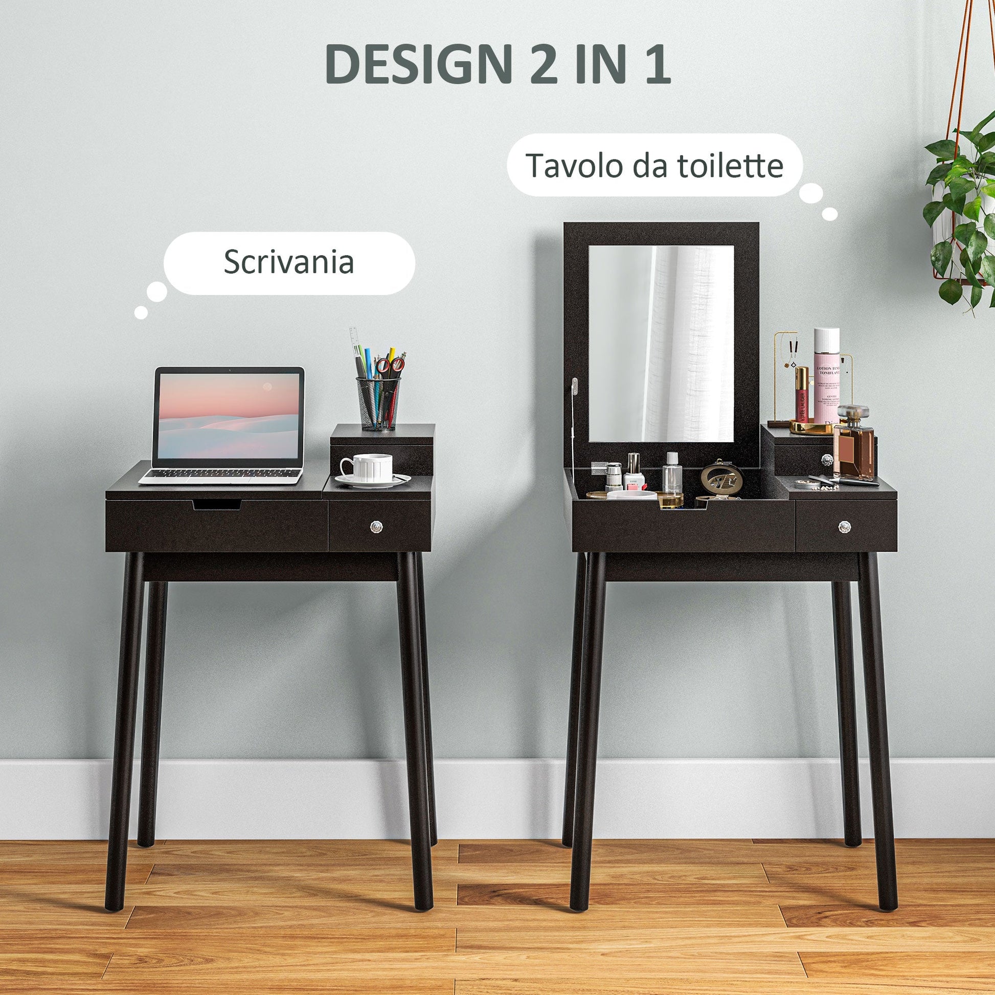 2 in 1 Dressing Table with Folding Mirror and 2 Drawers, 60x50x85.5 cm, Black
