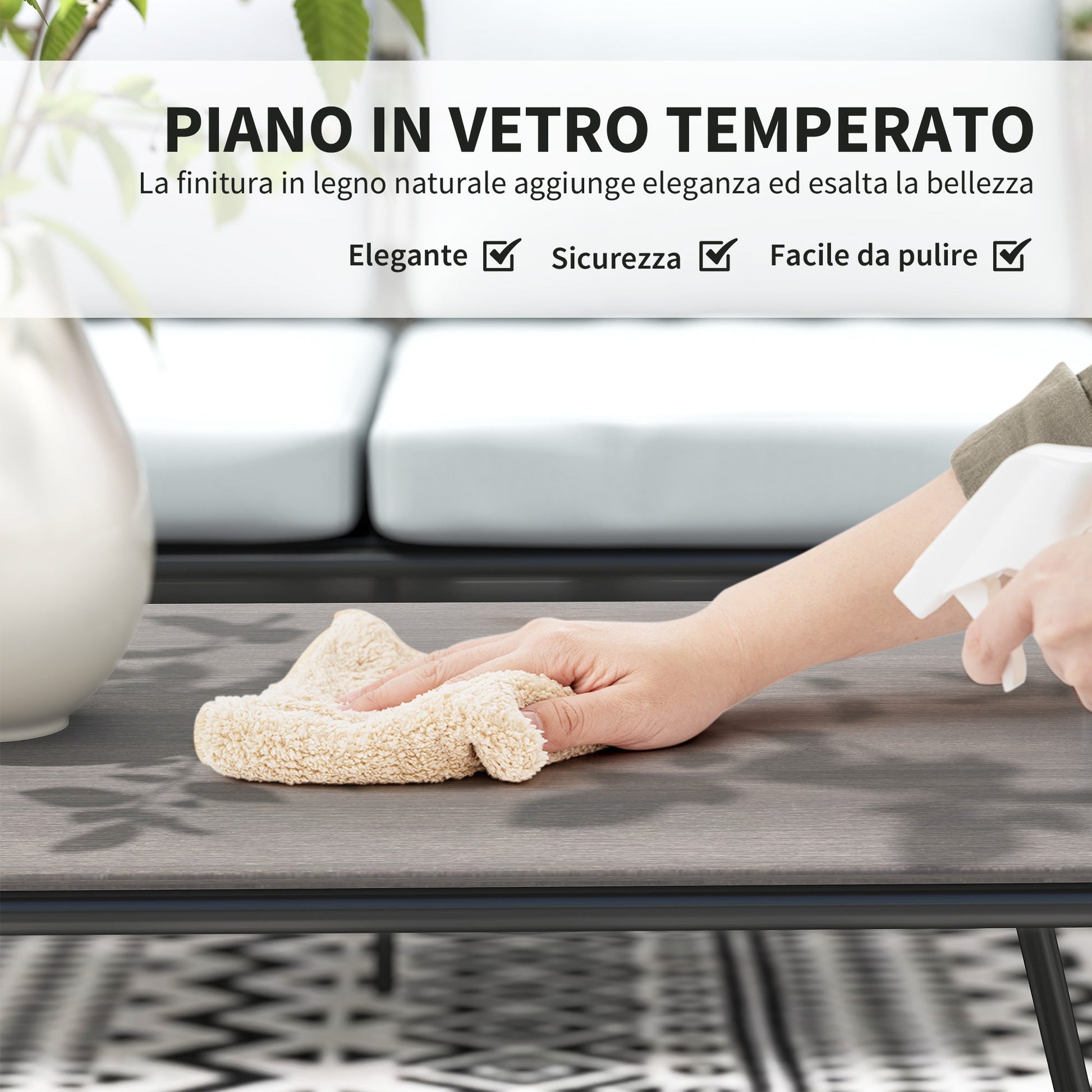 - • The garden table has a 5mm thick tempered glass top for added safety