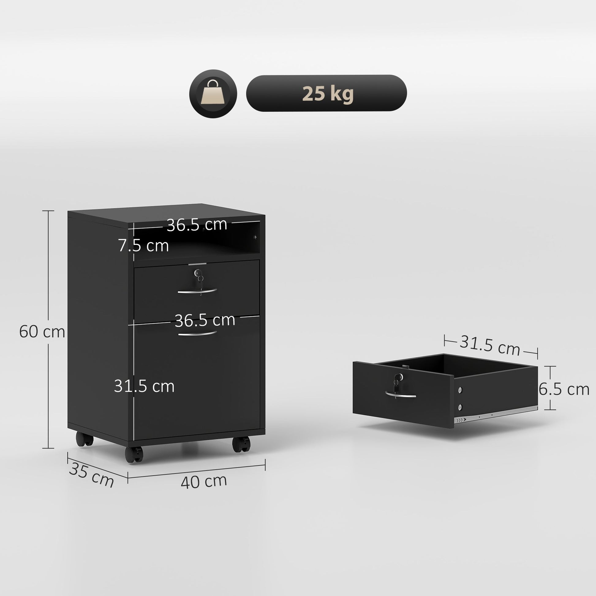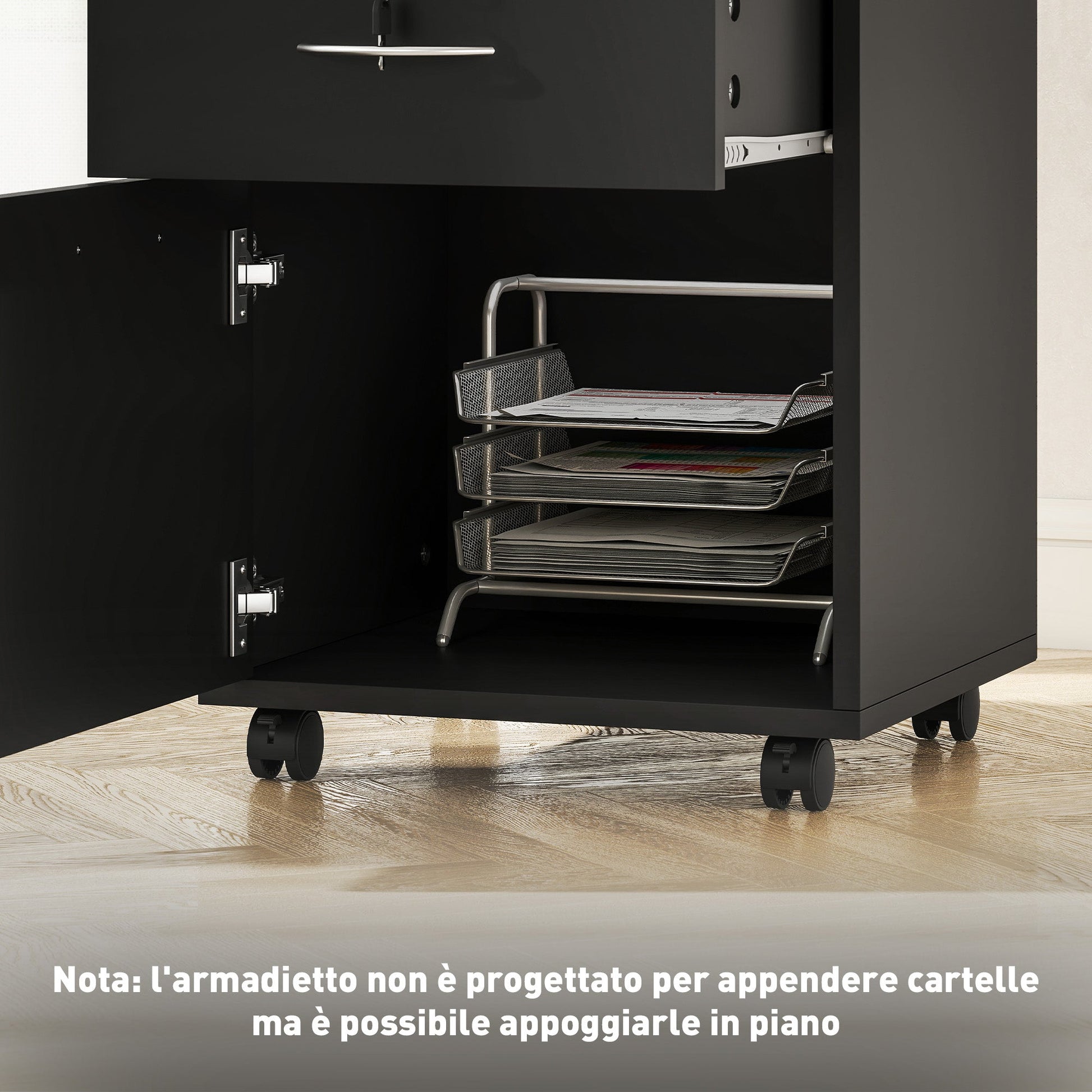 Wooden Office Cabinet with Open Shelf, Lockable Drawer and Storage Cabinet, 40x35x60 cm, Black