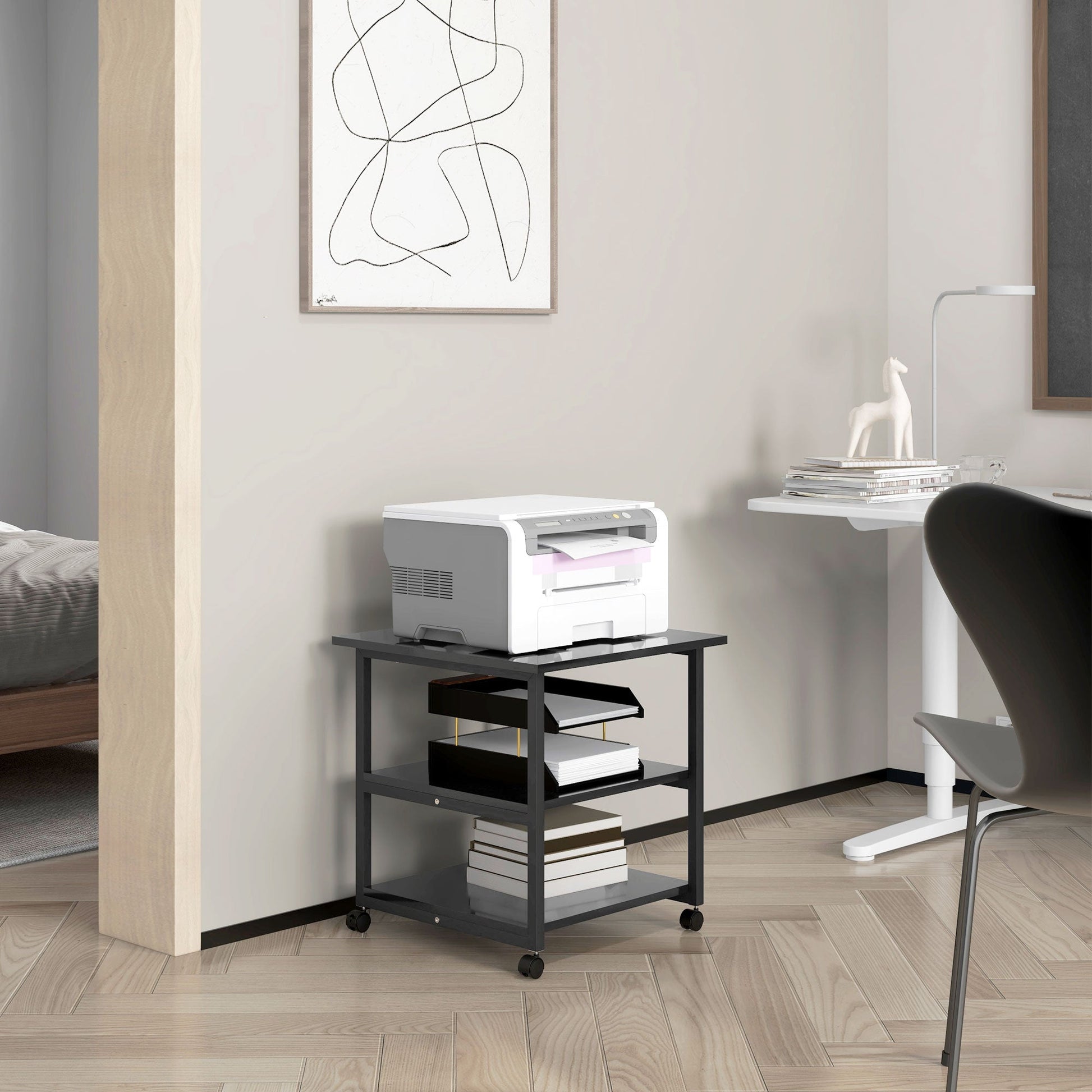 - VERSATILE SOLUTION: The printer trolley is made with 3 shelves, to offer you ample space in which to store documents and stationery in a practical and orderly way