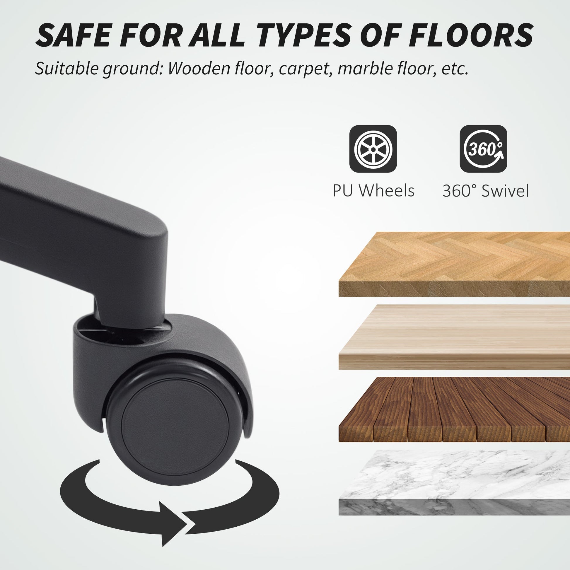 - • 360° swivel chair with silent wheels for flexible movement and floor protection