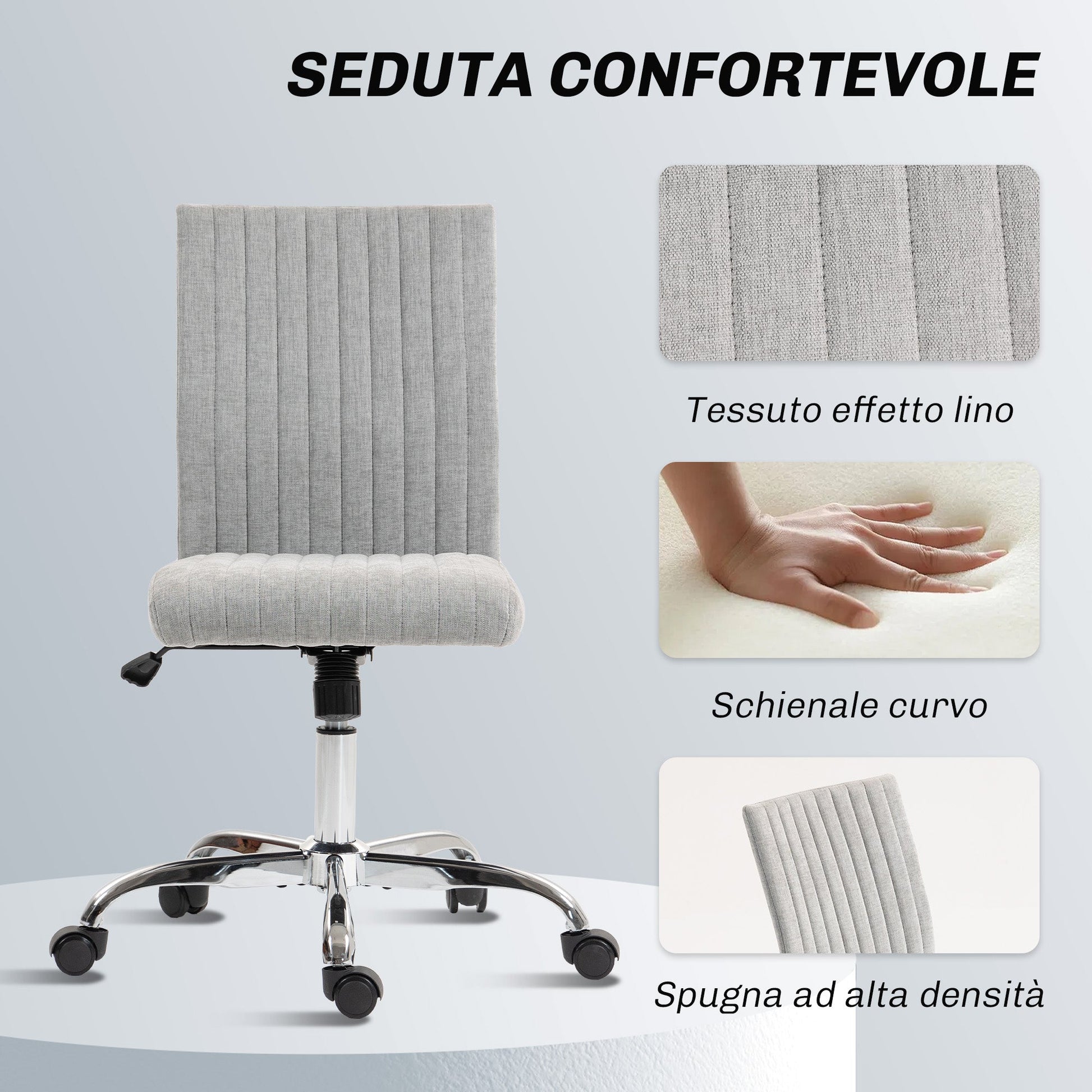 Armless Office Chair with Adjustable Height and Swivel Seat, Fabric Upholstery, Grey