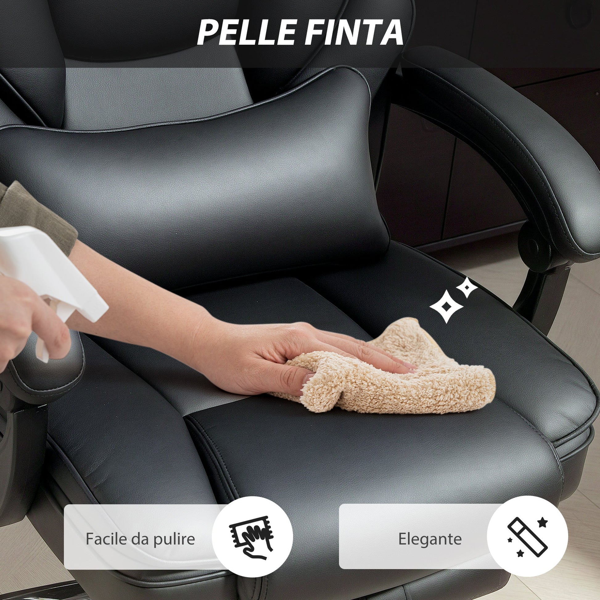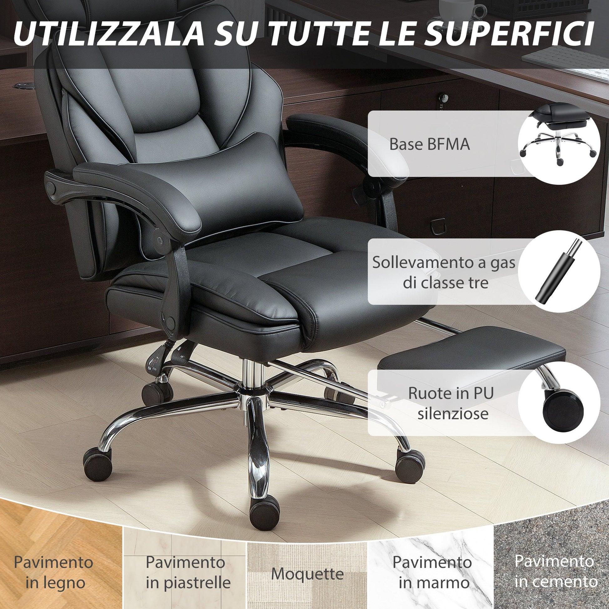 PU Leather Office Chair with Footrest, Adjustable Headrest and Lumbar Support, Black
