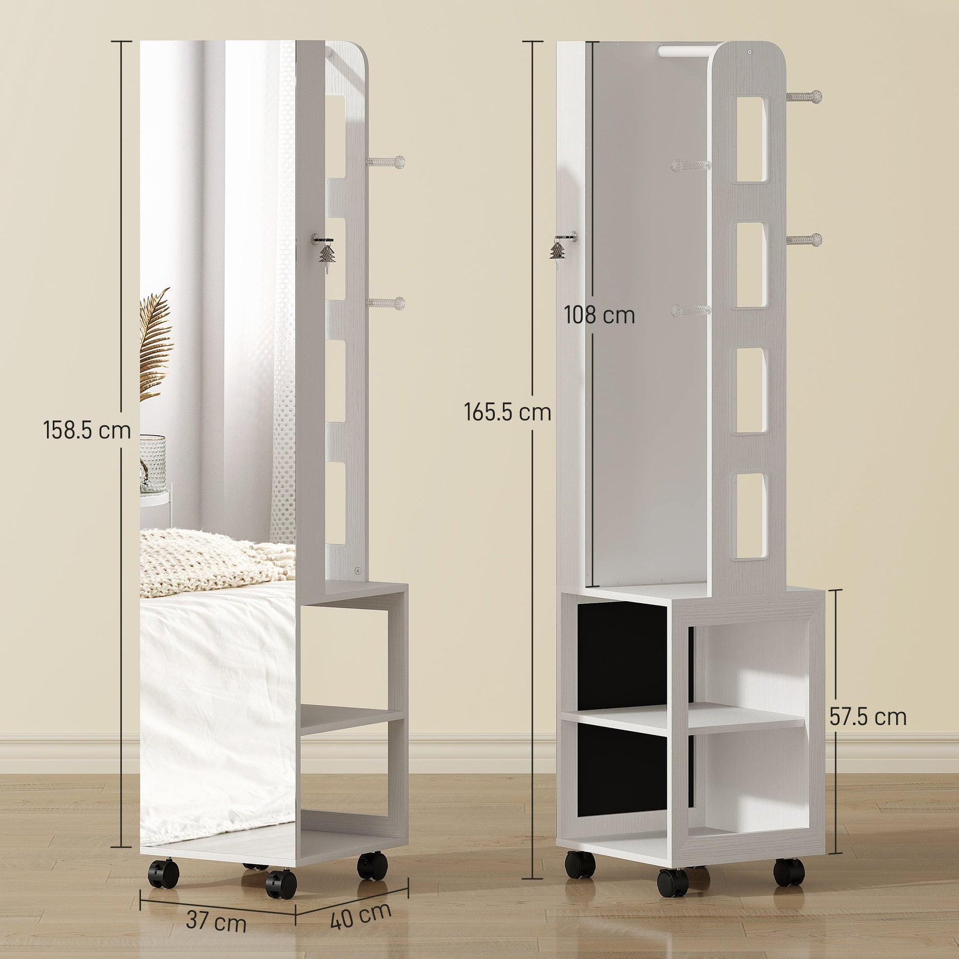 - 4-IN-1 DESIGN: This piece of furniture combines a coat rack, a jewelry cabinet, a full-length mirror, and a shelf. The built-in lock with two keys keeps your valuables safe, and the velvet interior lining protects them from scratches.