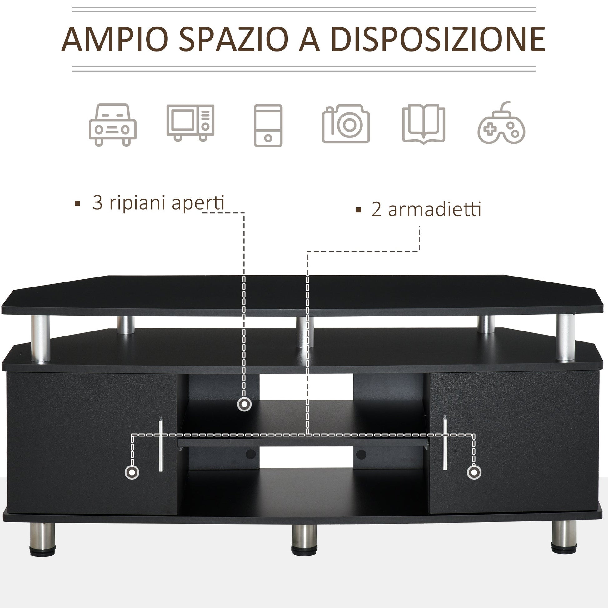 Classic Living Room TV Stand with 2 Shelves and 2 Cabinets, MDF and Stainless Steel, Black, 120x39.5x52cm