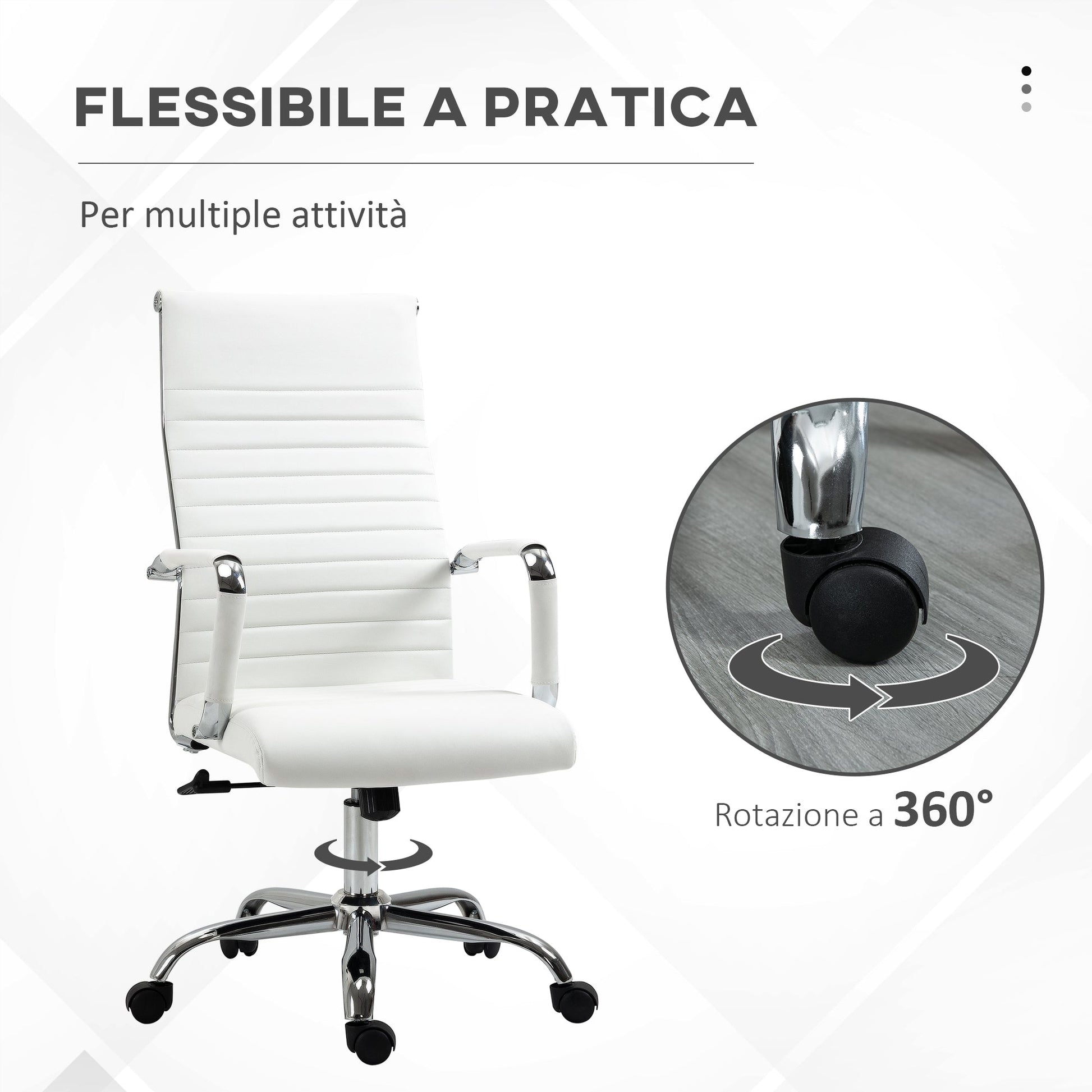 Ergonomic Faux Leather Office Chair, Swivel and Rocking Seat, 54x62x104-114 cm, White