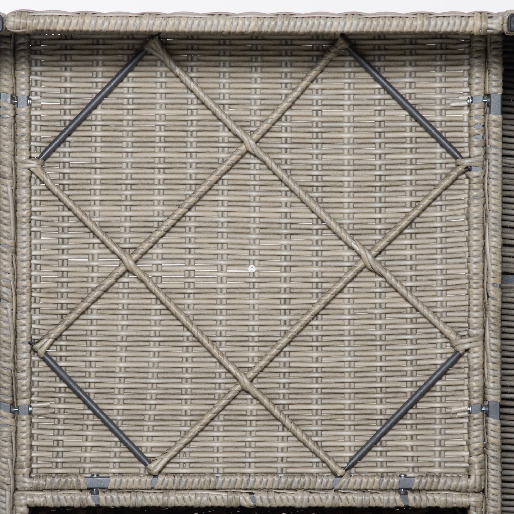 - • Steel frame with synthetic rattan covering