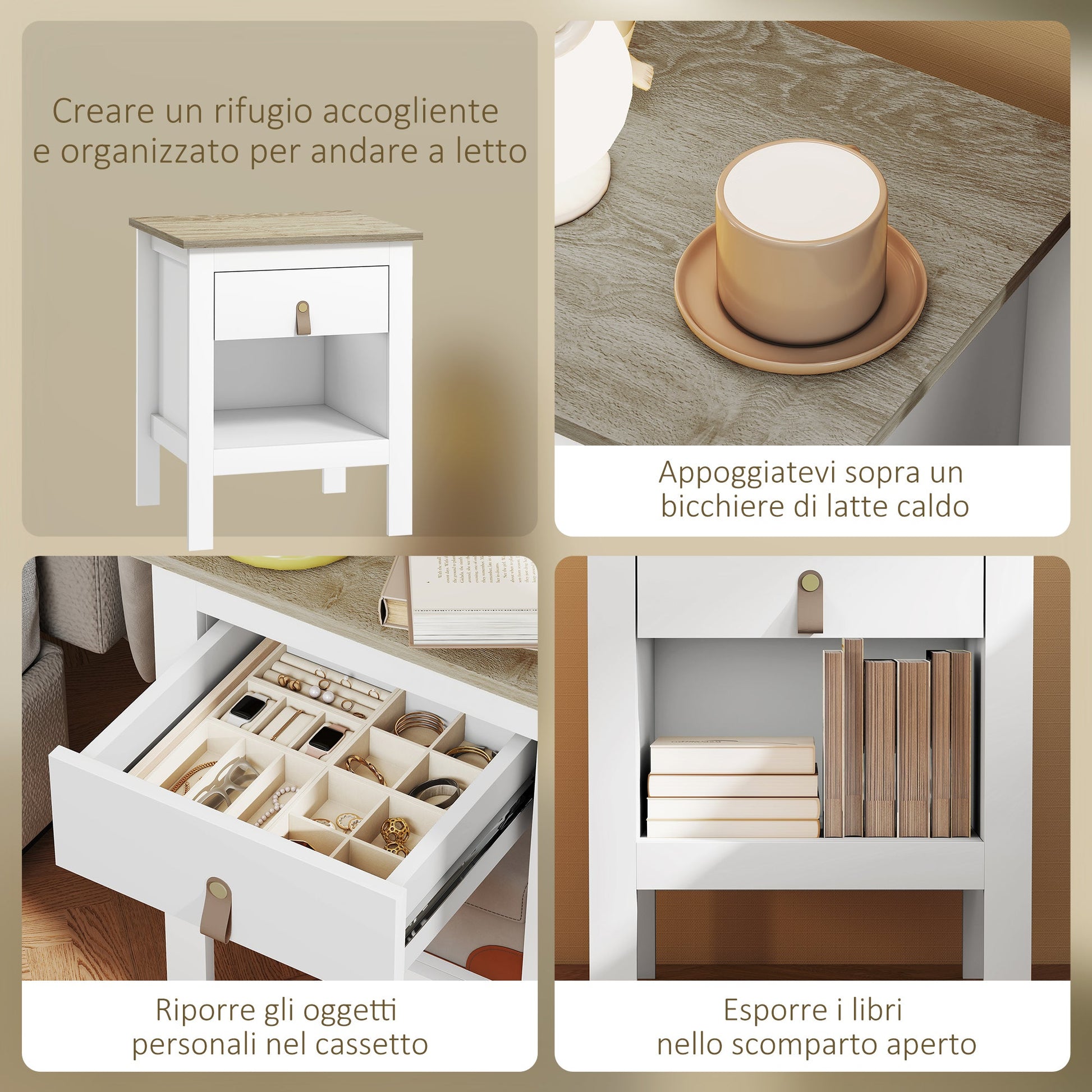 - MODERN ELEGANCE: Update your bedroom with our 2 bedside tables with faux leather handles. Their minimalist and refined style blends perfectly with any decor, bringing a touch of contemporary elegance to your space.