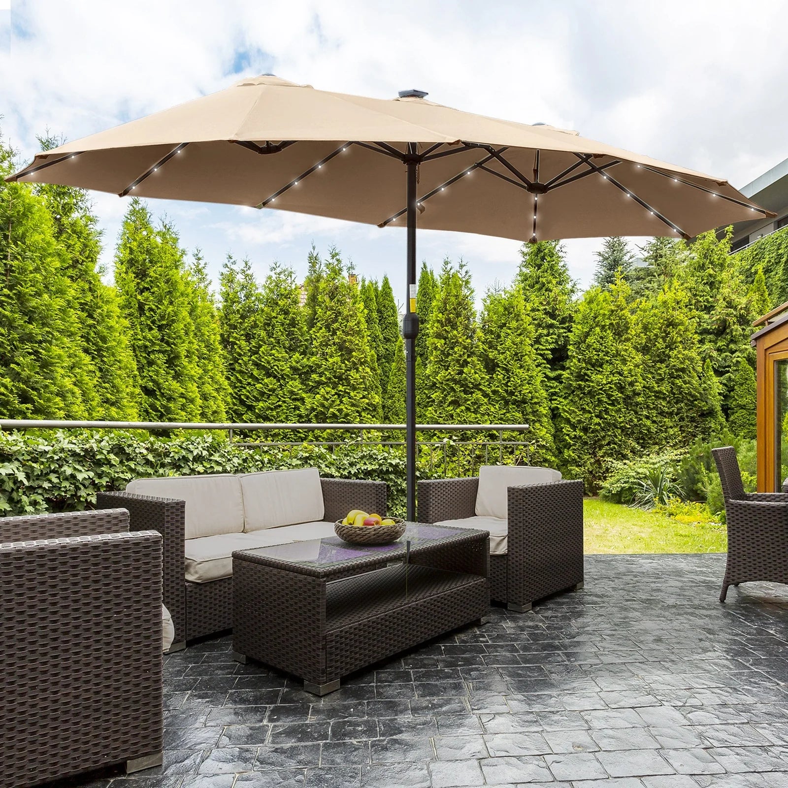 Large Solar‑Powered Double Garden Umbrella with 48 LED Lights – 4.5 m