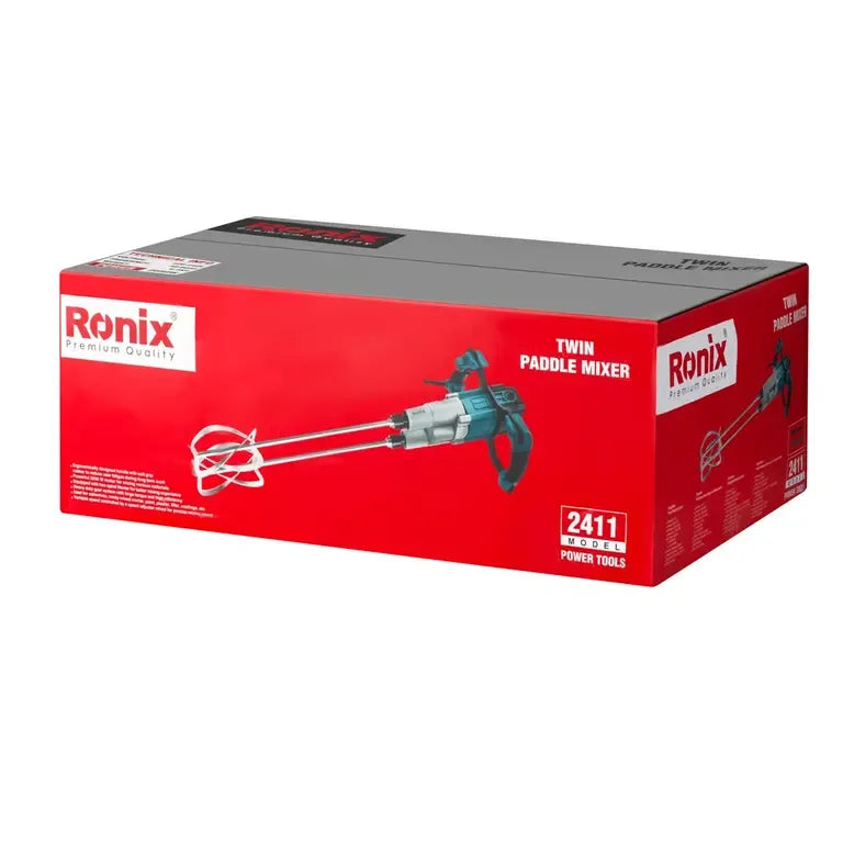 Ronix 2411 twin paddle mixer is a high-performance mixing tool designed to handle a wide variety of tasks with ease. Powered by a 2050 W gearbox motor, it offers a maximum no-load speed of 840 RPM, using a standard 220-240 V power supply. This mixer delivers an optimal balance of power and torque for any application.