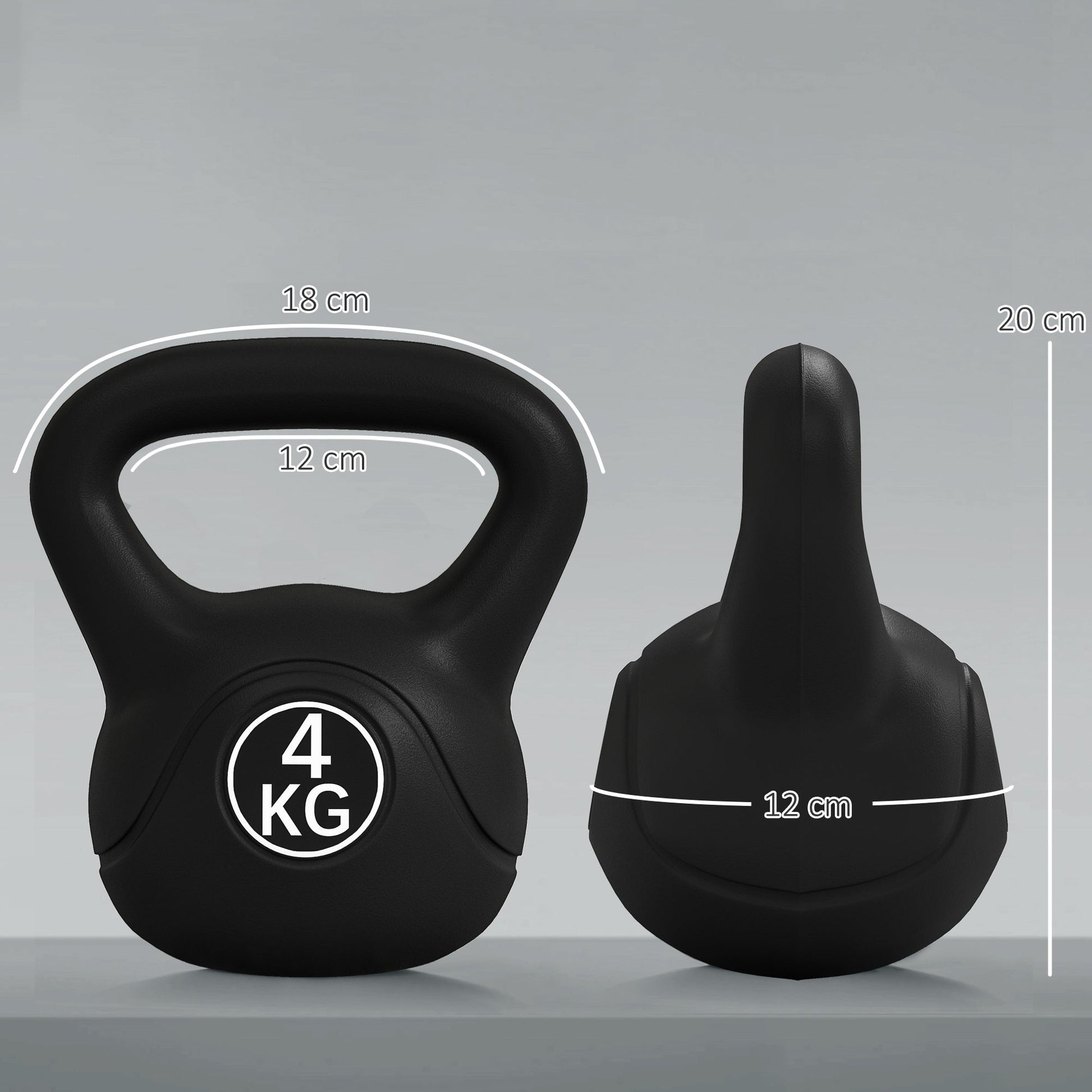 Kettlebell 4kg in Plastic and Sand with Flat Base and Handle, 18x12x20 cm, Black
