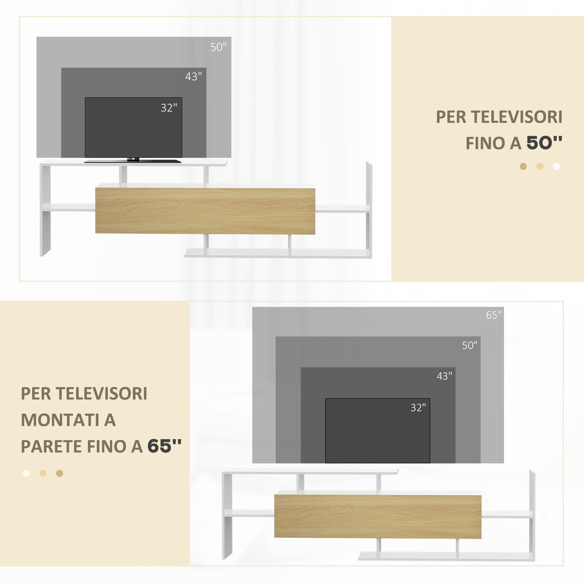 TV Cabinet with Wall Shelf, Open Shelves and Wooden Cabinet, White and Natural Wood