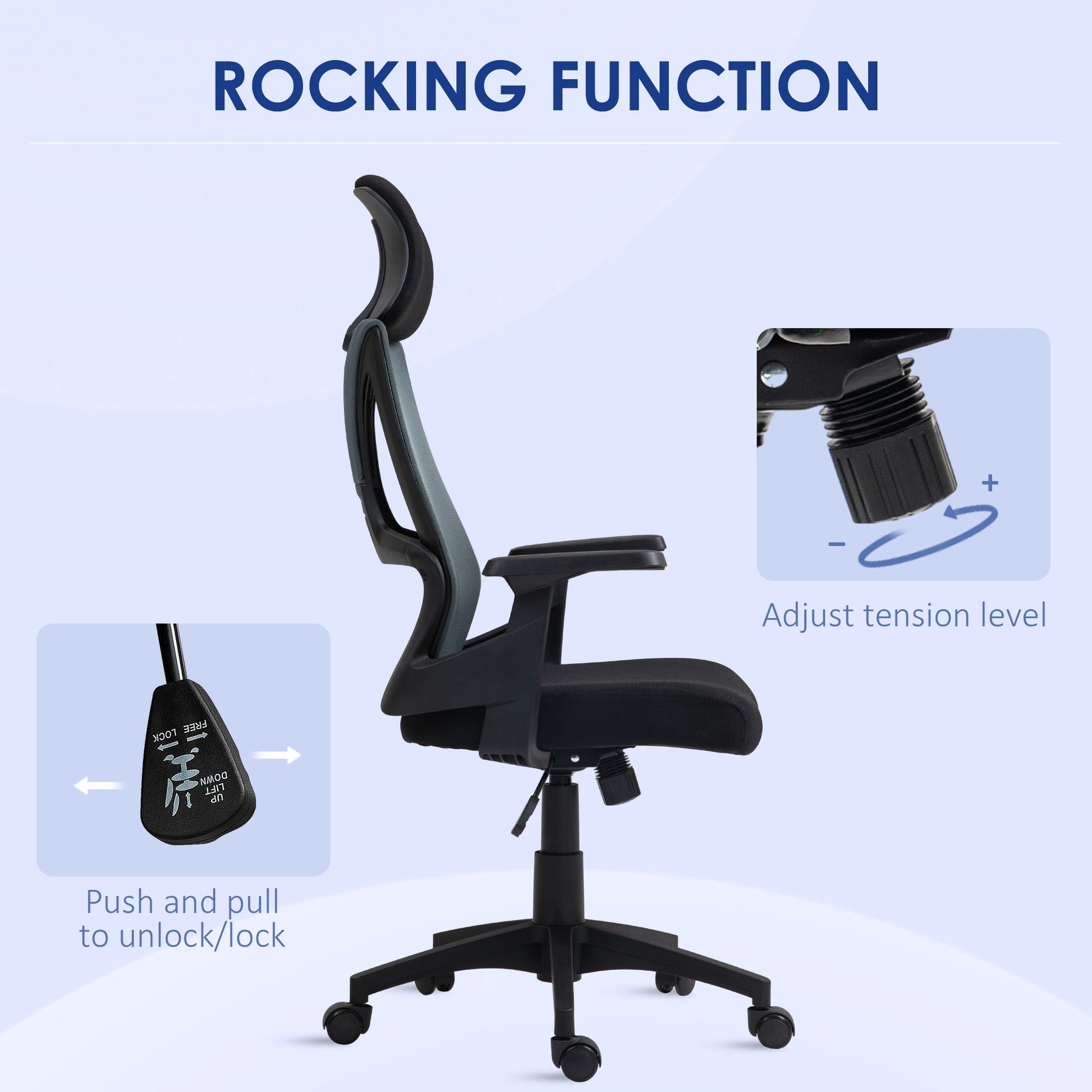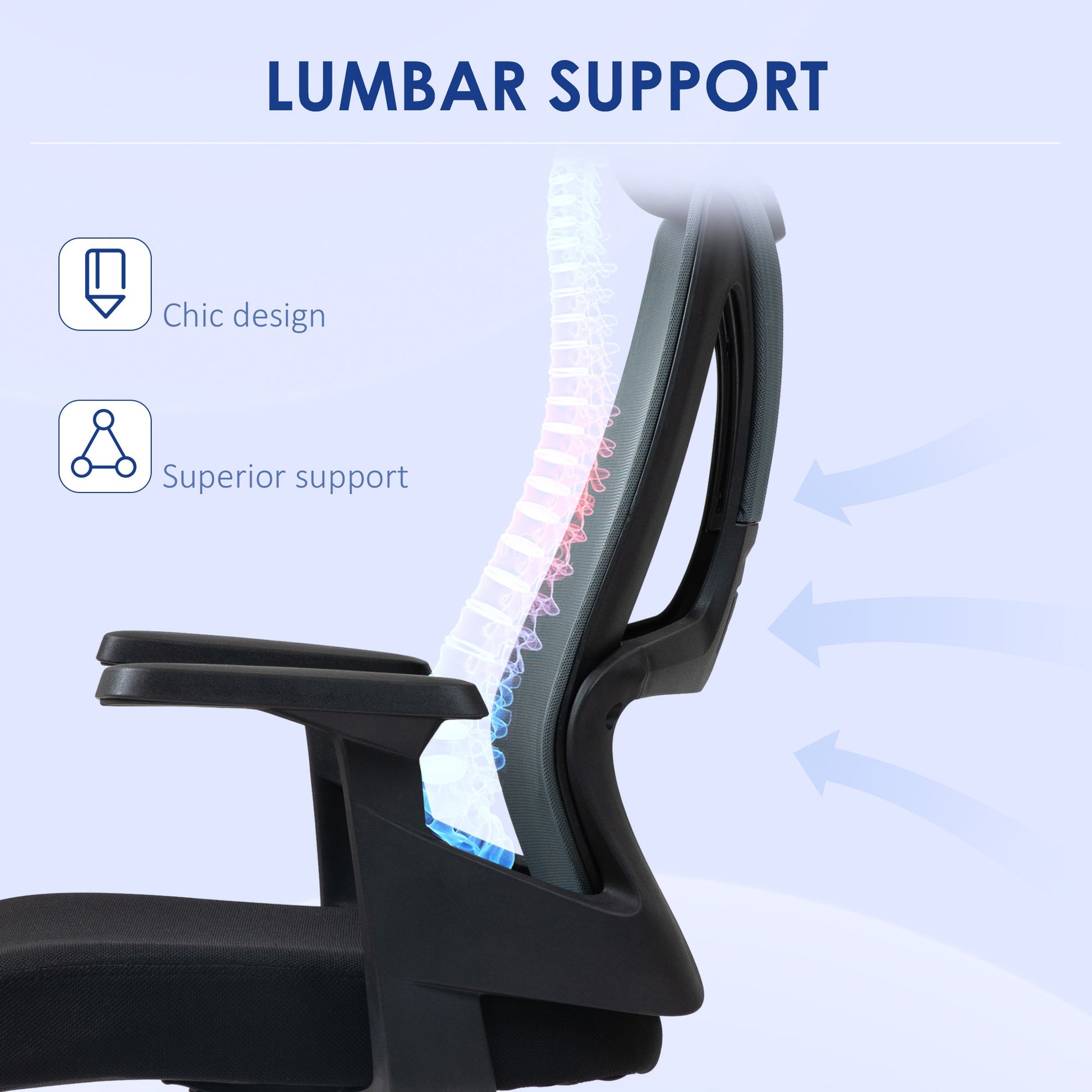 Office Chair with Lumbar Support and Headrest, Swivel Seat with Adjustable Height, Black