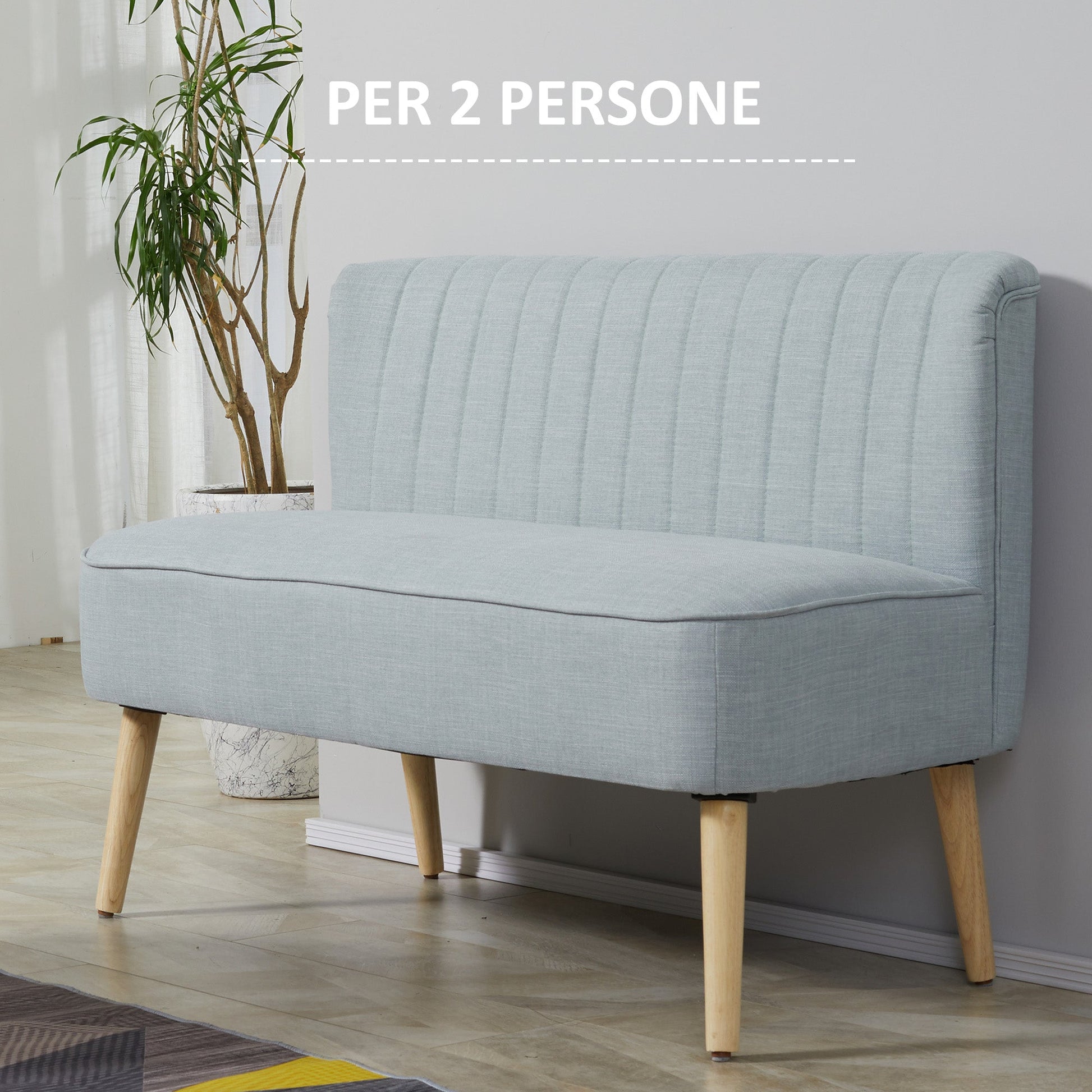 2 Seater Modern Fabric Sofa Without Armrests with Wooden Legs, 117x56. 5x77 cm, Light Blue