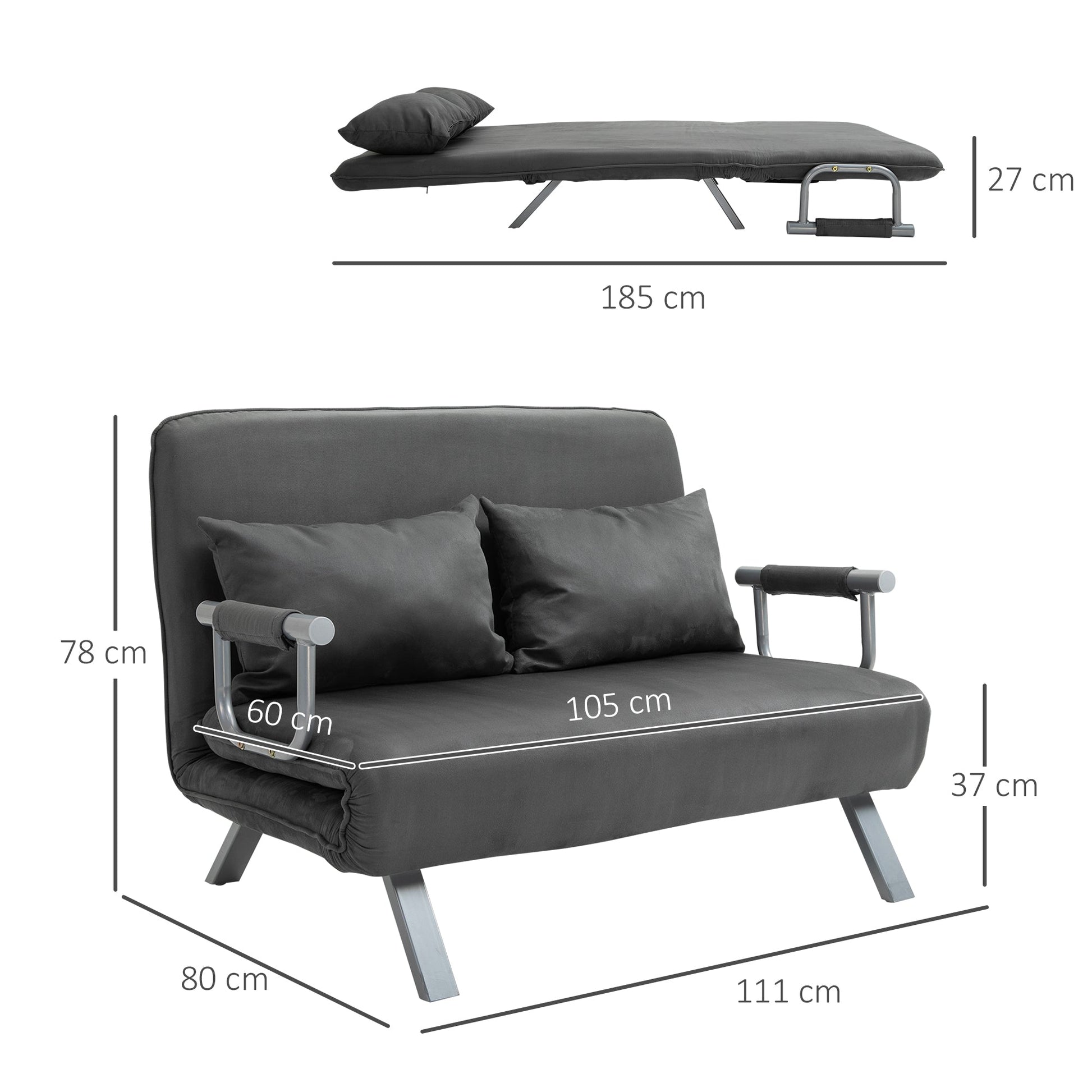 2 Seater Sofa Bed in Faux Leather and Steel with 5-Position Adjustable Seat, 105x80x78 cm, Grey