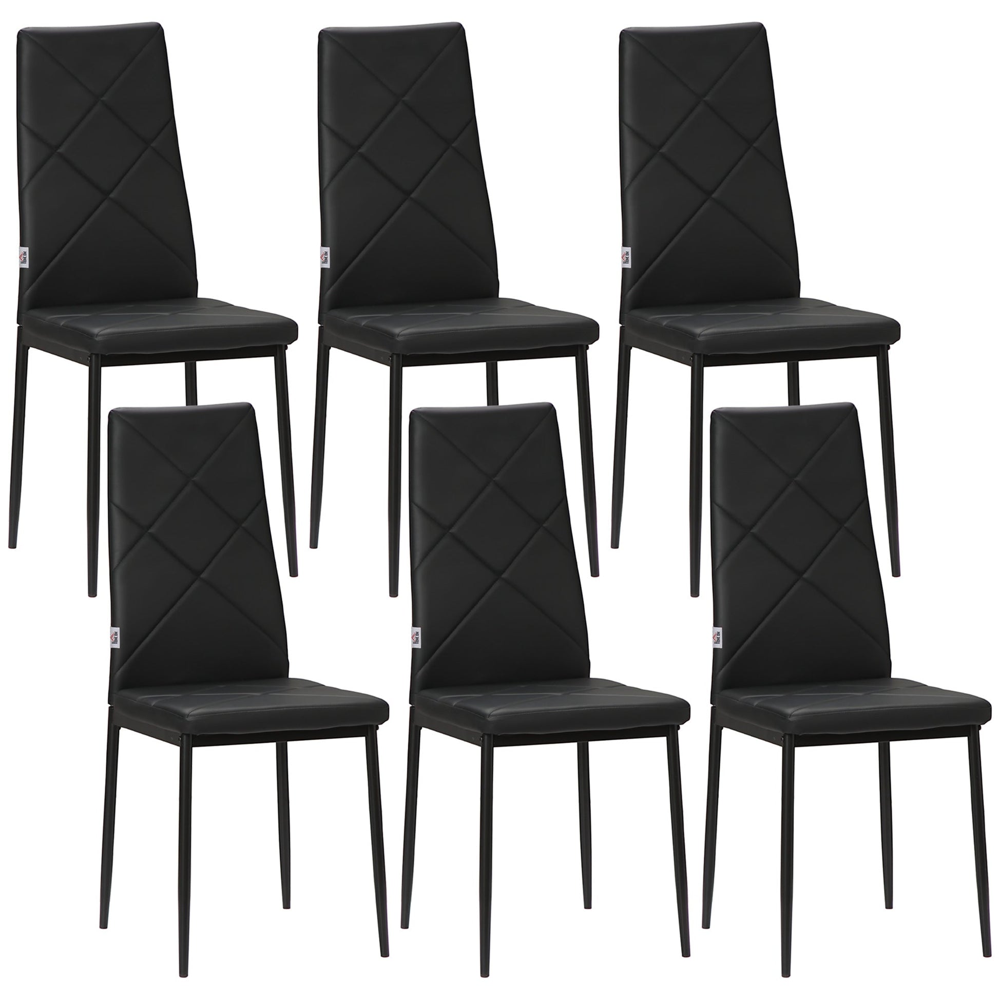Set of 6 Modern Dining Chairs with High Back in Faux Leather and Steel, 41x50x97 cm, Black