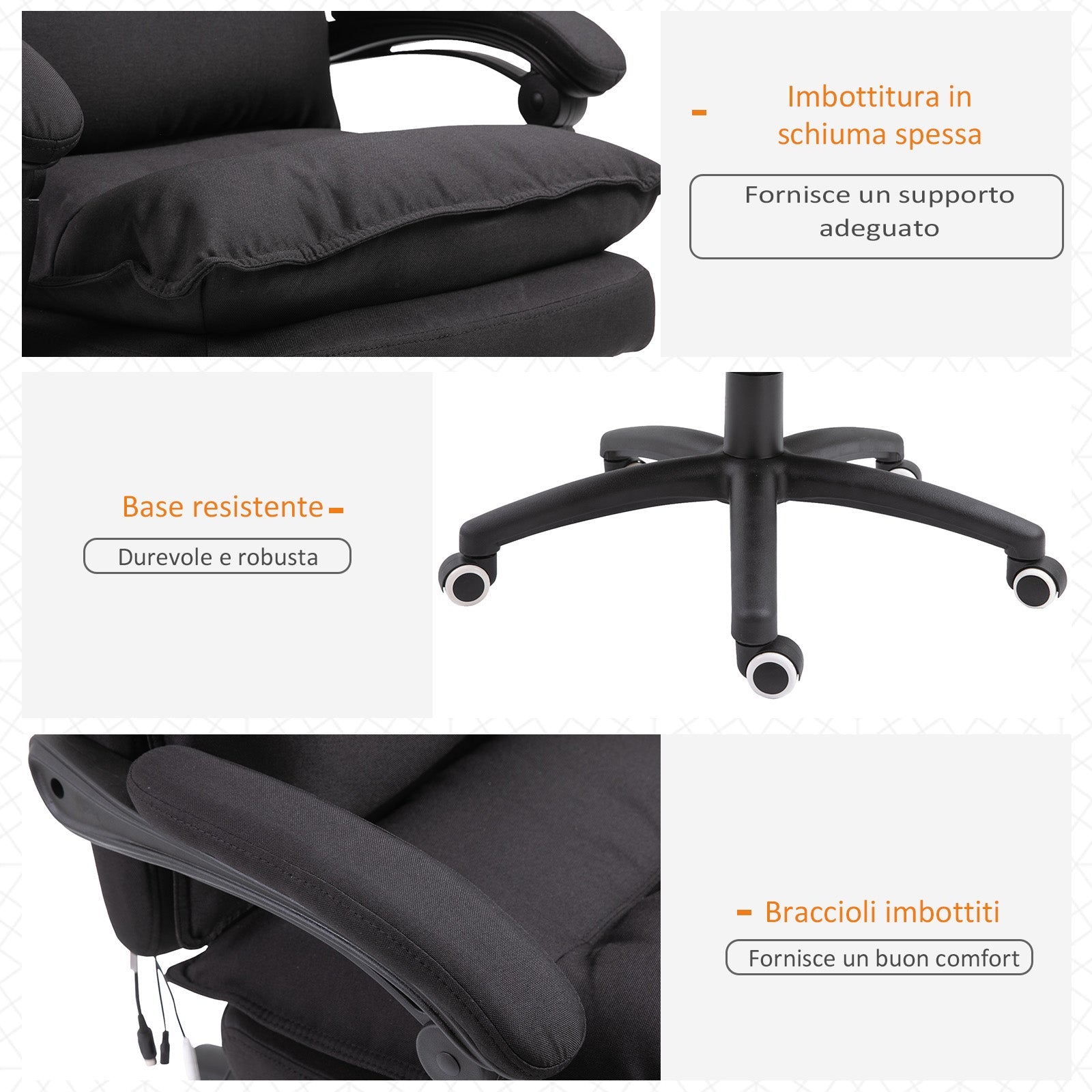Height Adjustable Office Chair with 6 Massage Points, in Linen Effect Fabric, 70x62x120-130 cm, Black