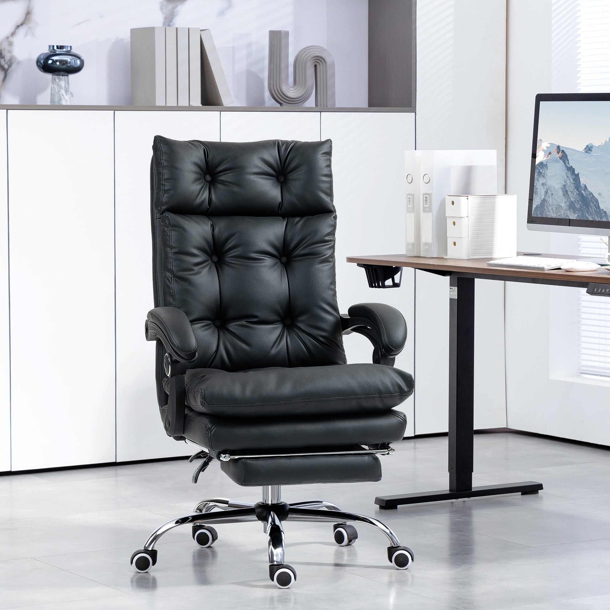 Faux Leather Office Chair with 135° Reclining Backrest and Pull-Out Footrest, Black