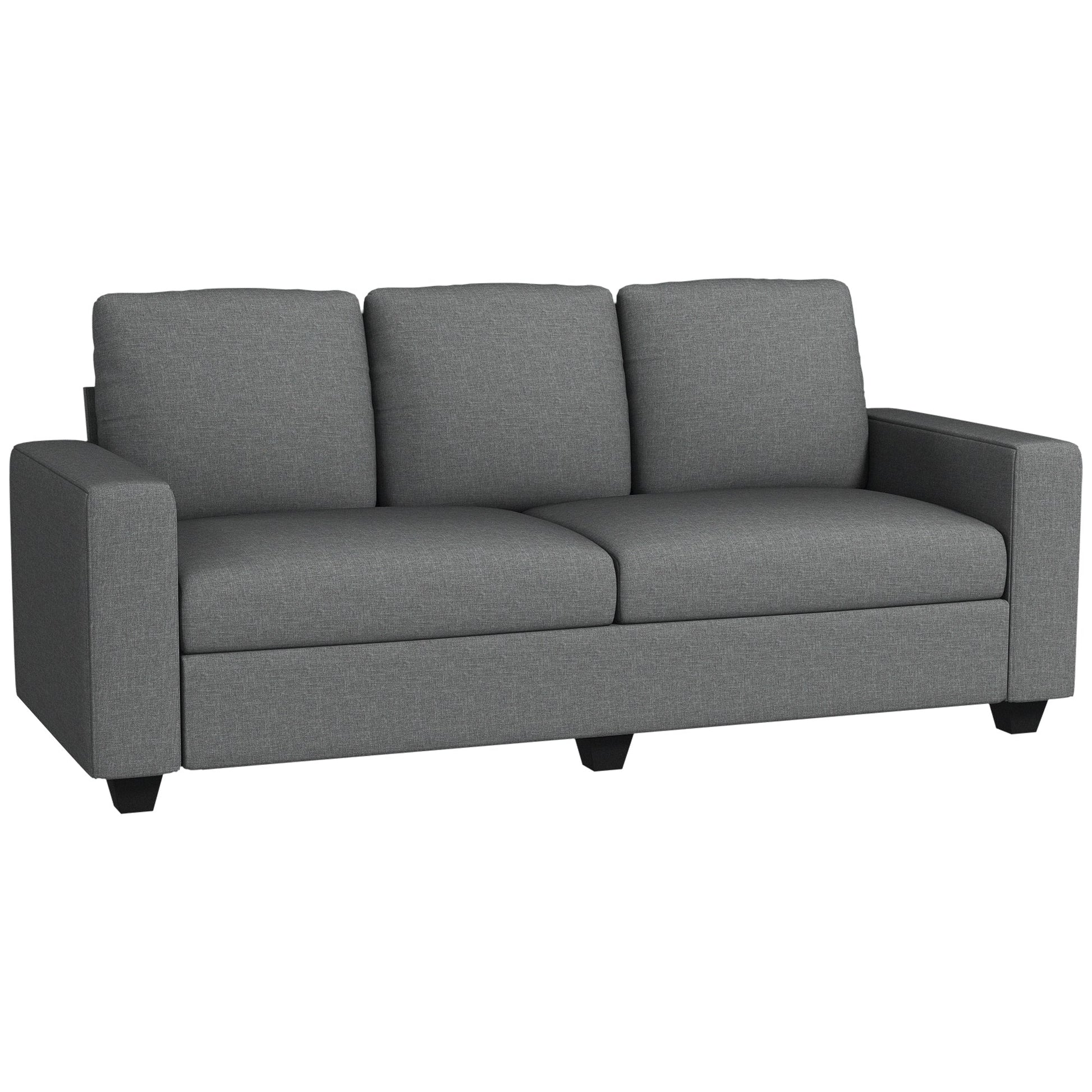 3 Seater Fabric Sofa with Padded Cushions and Linen Effect Upholstery, 237x94x102cm, Grey