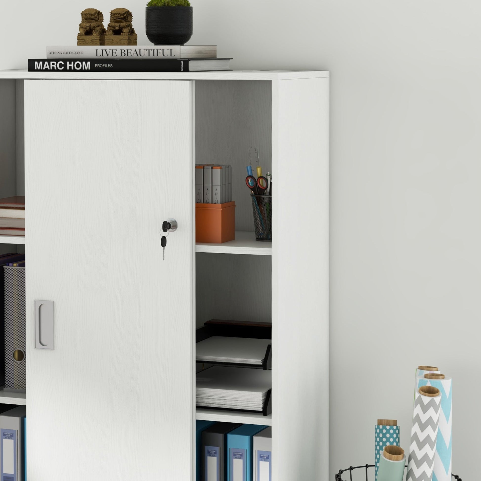 - LOCKABLE SLIDING DOOR: This office cabinet with lock and practical doors saves space when opened. Locking the cabinet with a key makes everything more secure and professional.