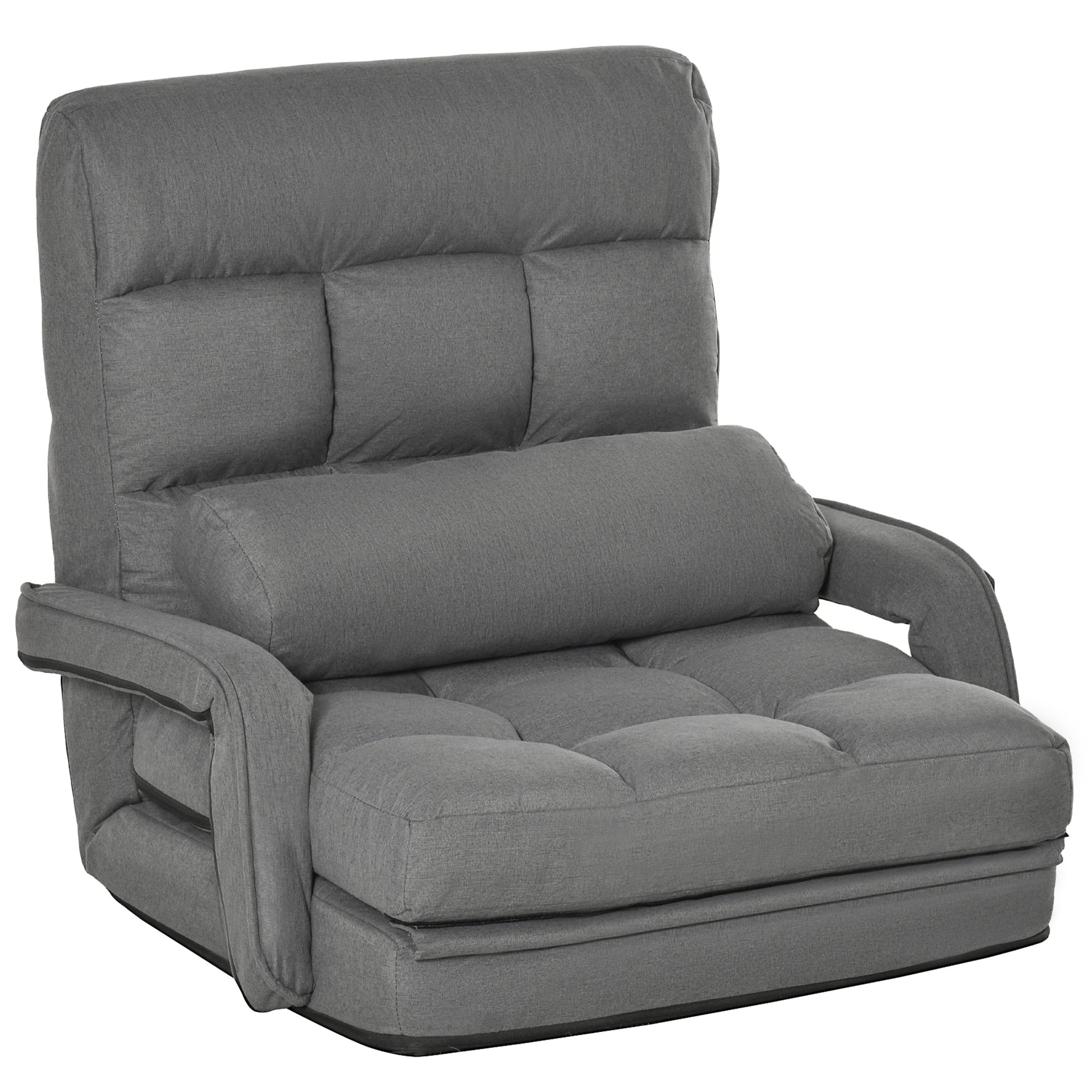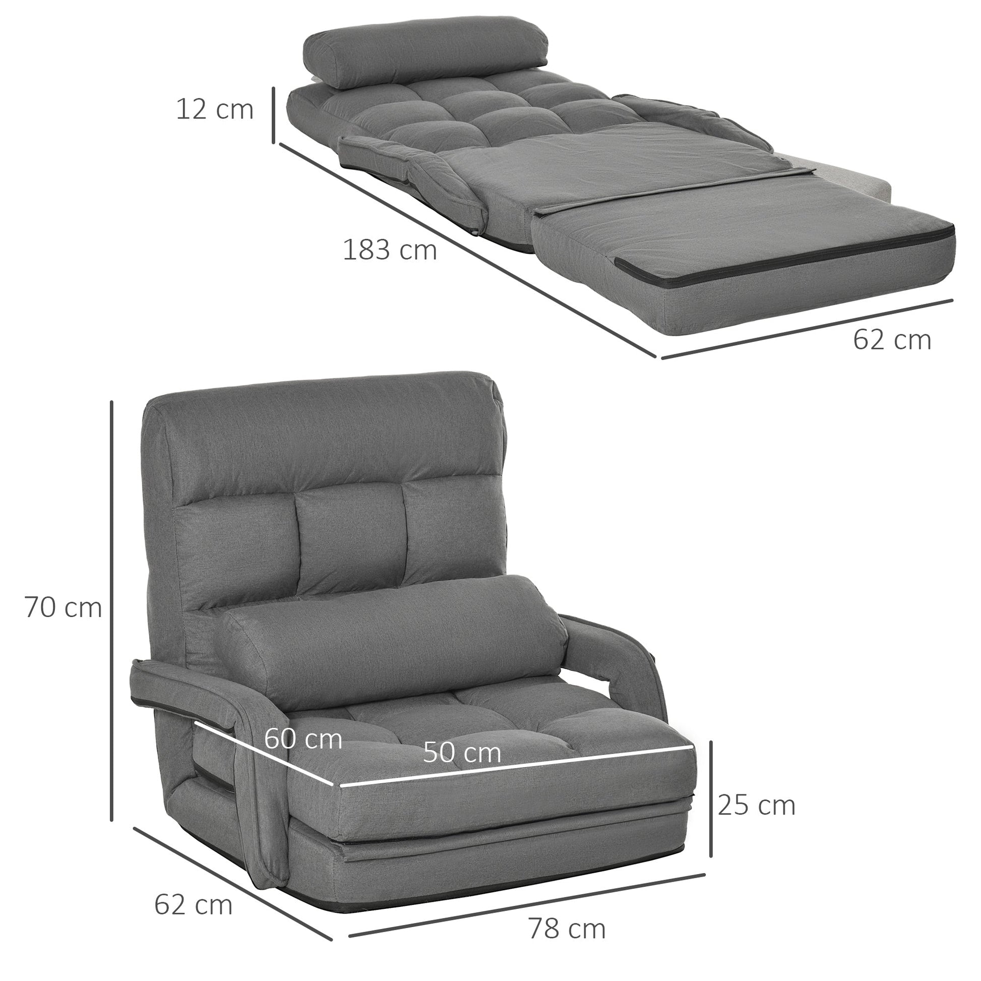 Single Sofa Bed with Cushion and 5-Level Reclining Backrest, 62x78x70 cm, Grey