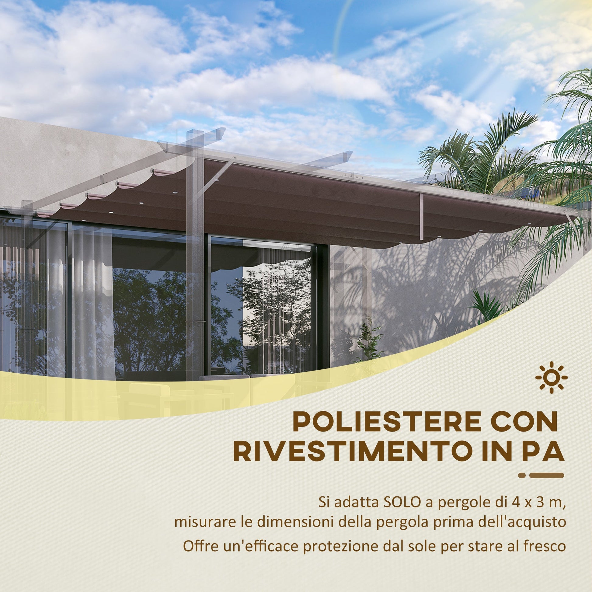 - COMPATIBILITY: This replacement canopy is suitable for Outsunny 4x3m pergola gazebo. Please check the size and model of your gazebo before purchasing.