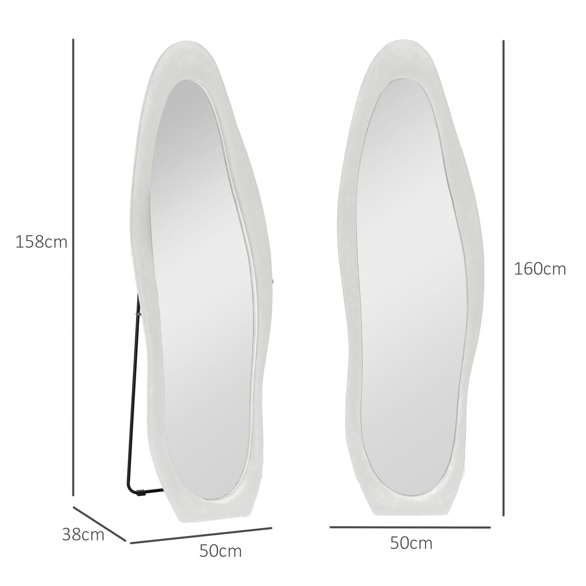 Full-length Mirror with Wavy Velvet Frame, Floor and Wall Mirror, 160x50 cm, White