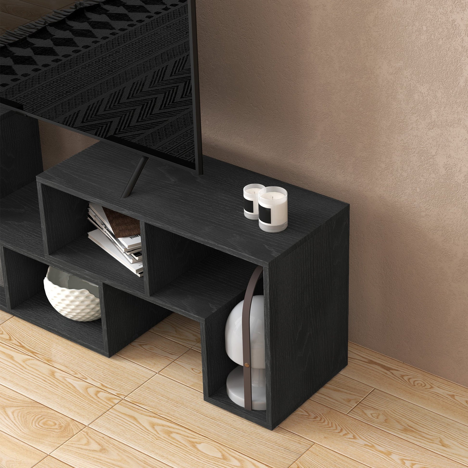 TV Unit 75" max Modular TV Stand with 2 L-Shaped Shelves and Rectangular Shelf, Wooden, 134-180x30.5x44 cm, Black