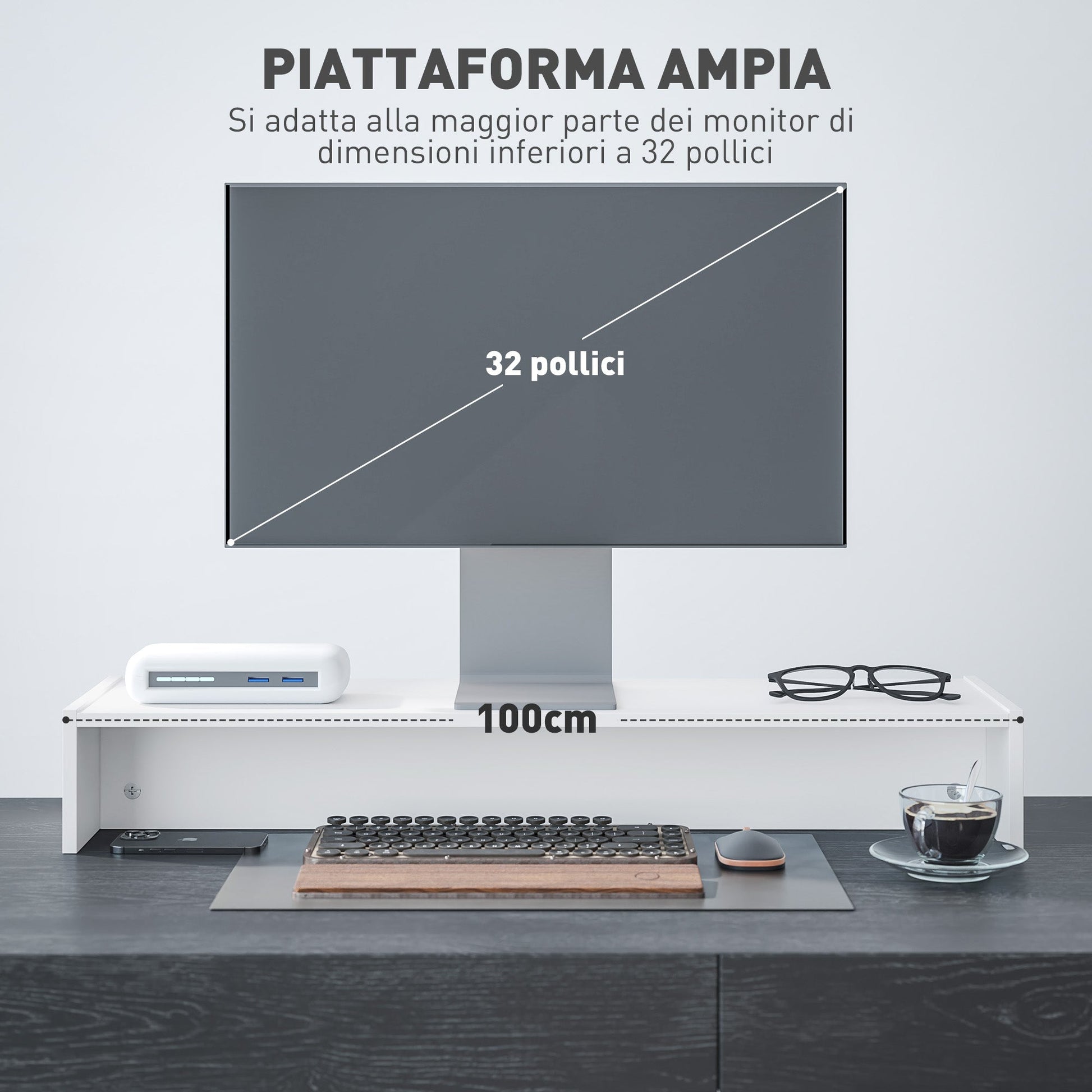 Monitor Stand with 2 Wooden Storage Compartments, 100x27x15 cm, White