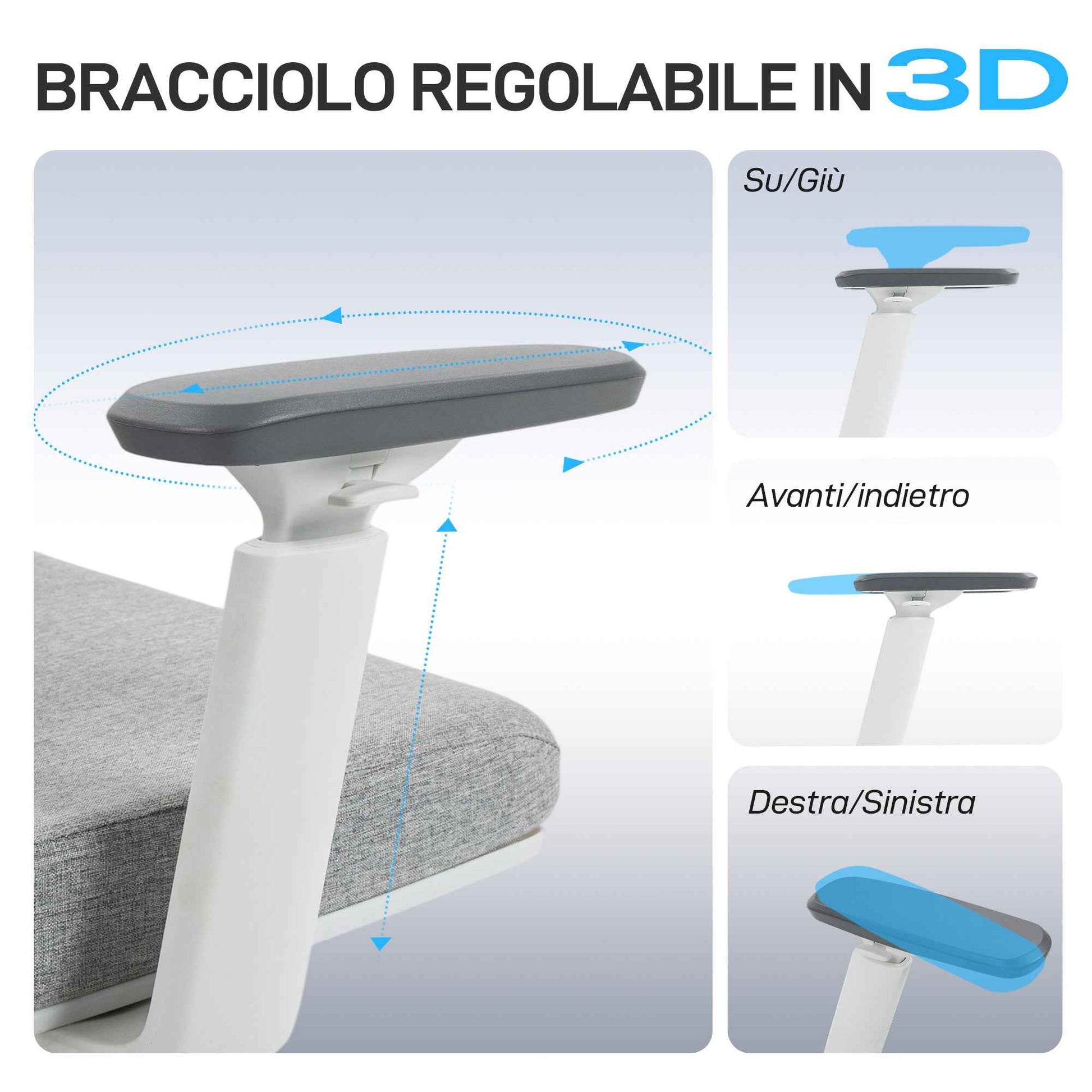 - ADJUSTMENTS: Customize the 3D armrests by orienting them in the desired direction for maximum comfort. Change the headrest tilt and adjust the seat height between 46 and 56 cm for complete customization of the desk chair.